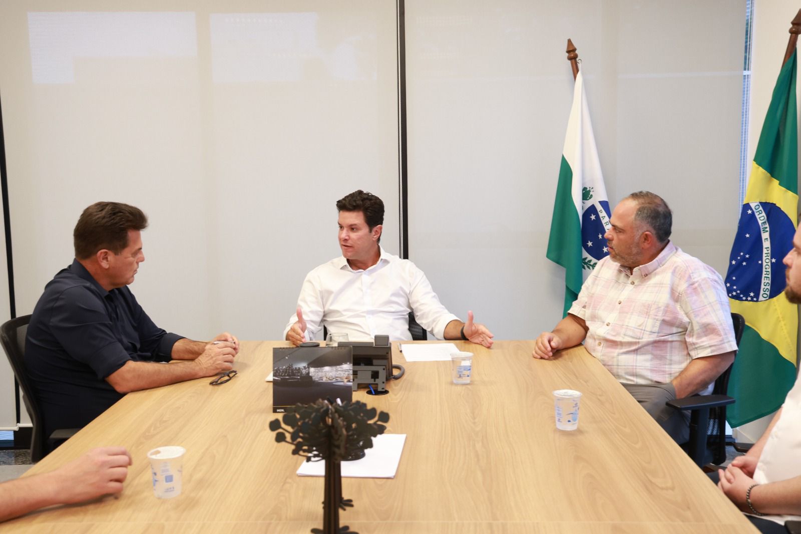 Na tarde desta terça-feira (13), o deputado Artagão Júnior, ao lado do prefeito de Guarapuava, Denilson Baitala, esteve em reunião com o secretário de Estado das Cidades, Guto Silva, para acompanhar o andamento de projetos importantes do município que estão em fase de análise técnica para liberação de recursos.