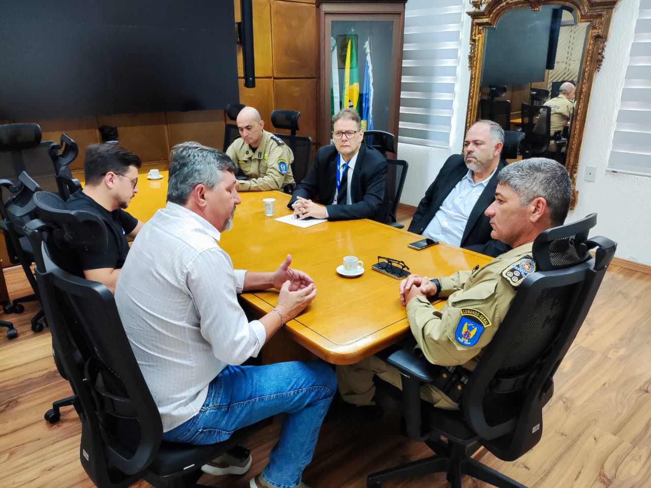 Também participaram do encontro o chefe de gabinete e comandante Guimarães, o secretário municipal de Turismo, Fernando, e o assessor parlamentar do deputado, César Augusto.