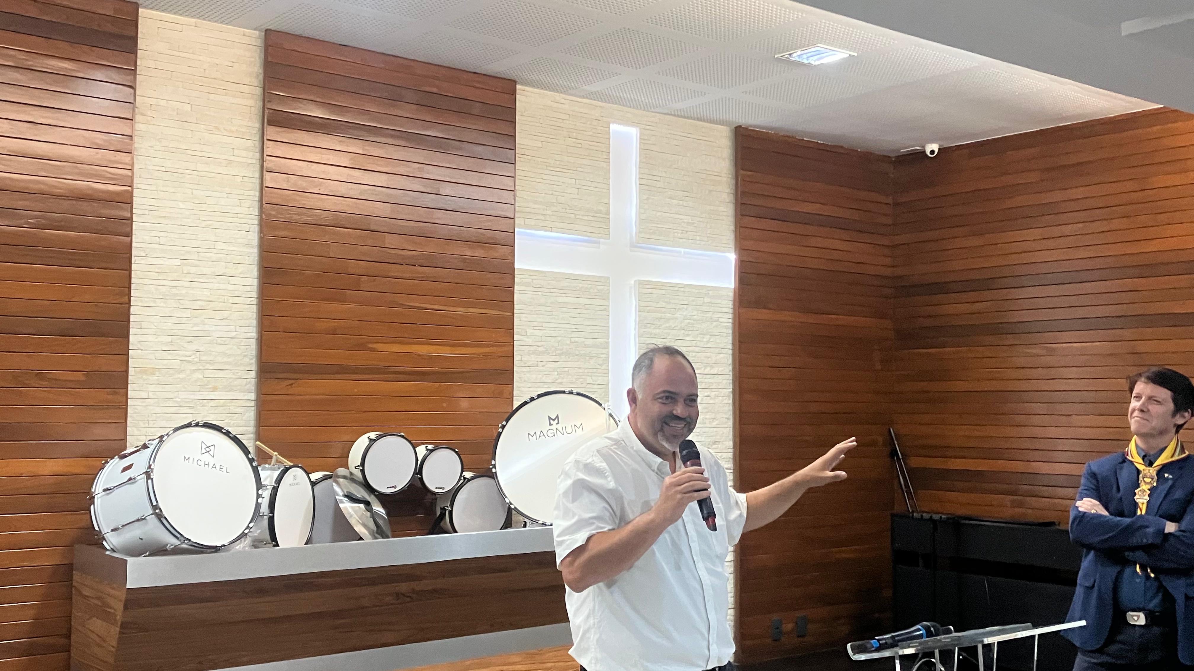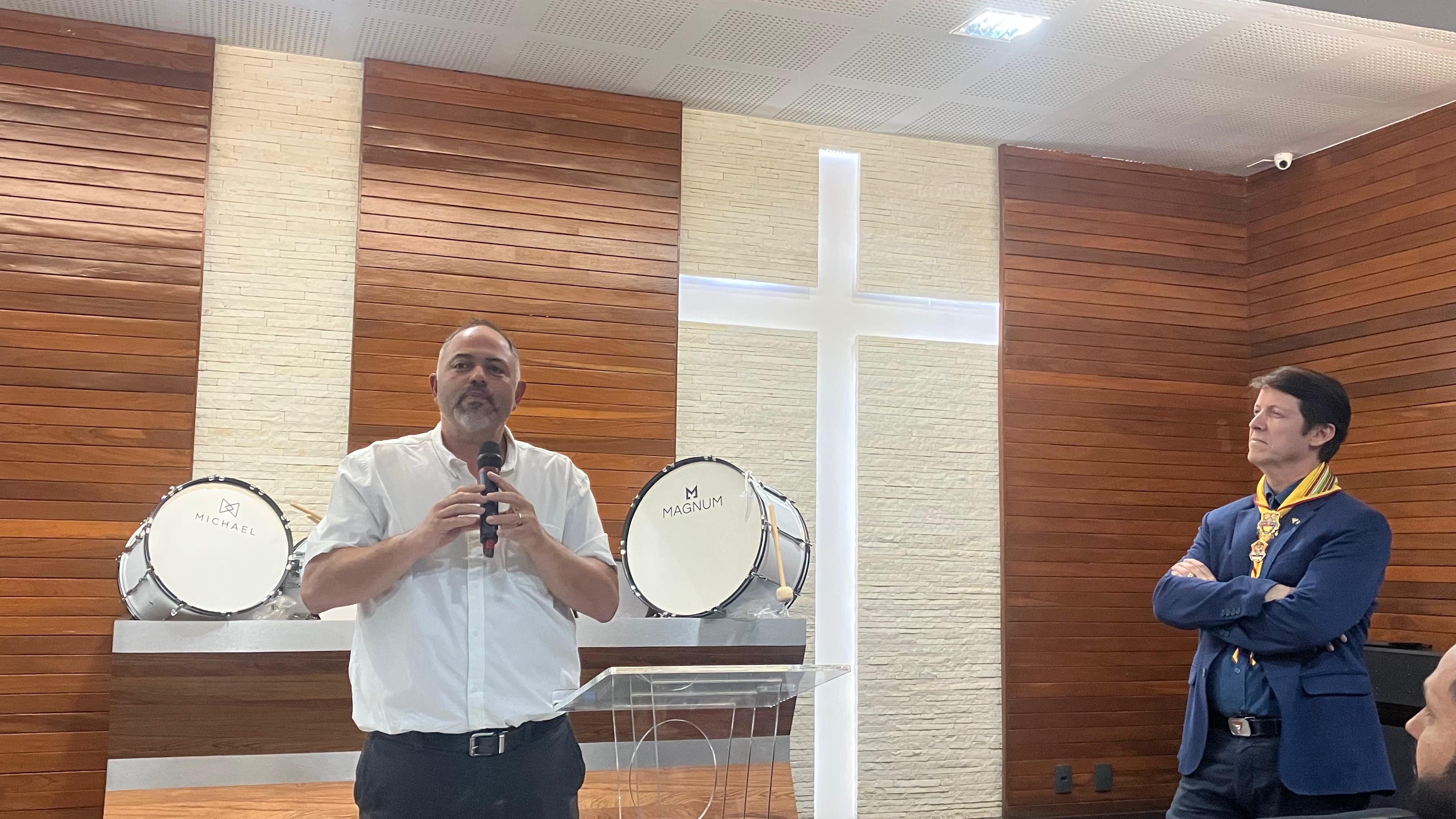 Na noite desta quinta-feira (12), o deputado estadual Artagão Júnior esteve em Maringá para realizar a entrega de instrumentos musicais para quatro Clubes de Desbravadores do município. O evento ocorreu na sede da Associação Norte Paranaense da Igreja Adventista do Sétimo Dia (ANP) e reuniu lideranças religiosas, autoridades locais, pais e jovens integrantes do clube.