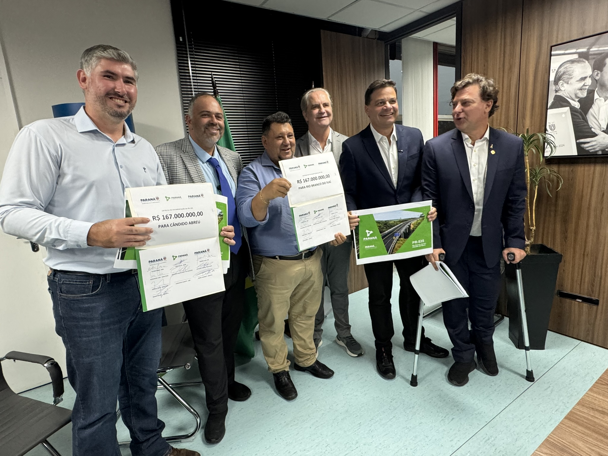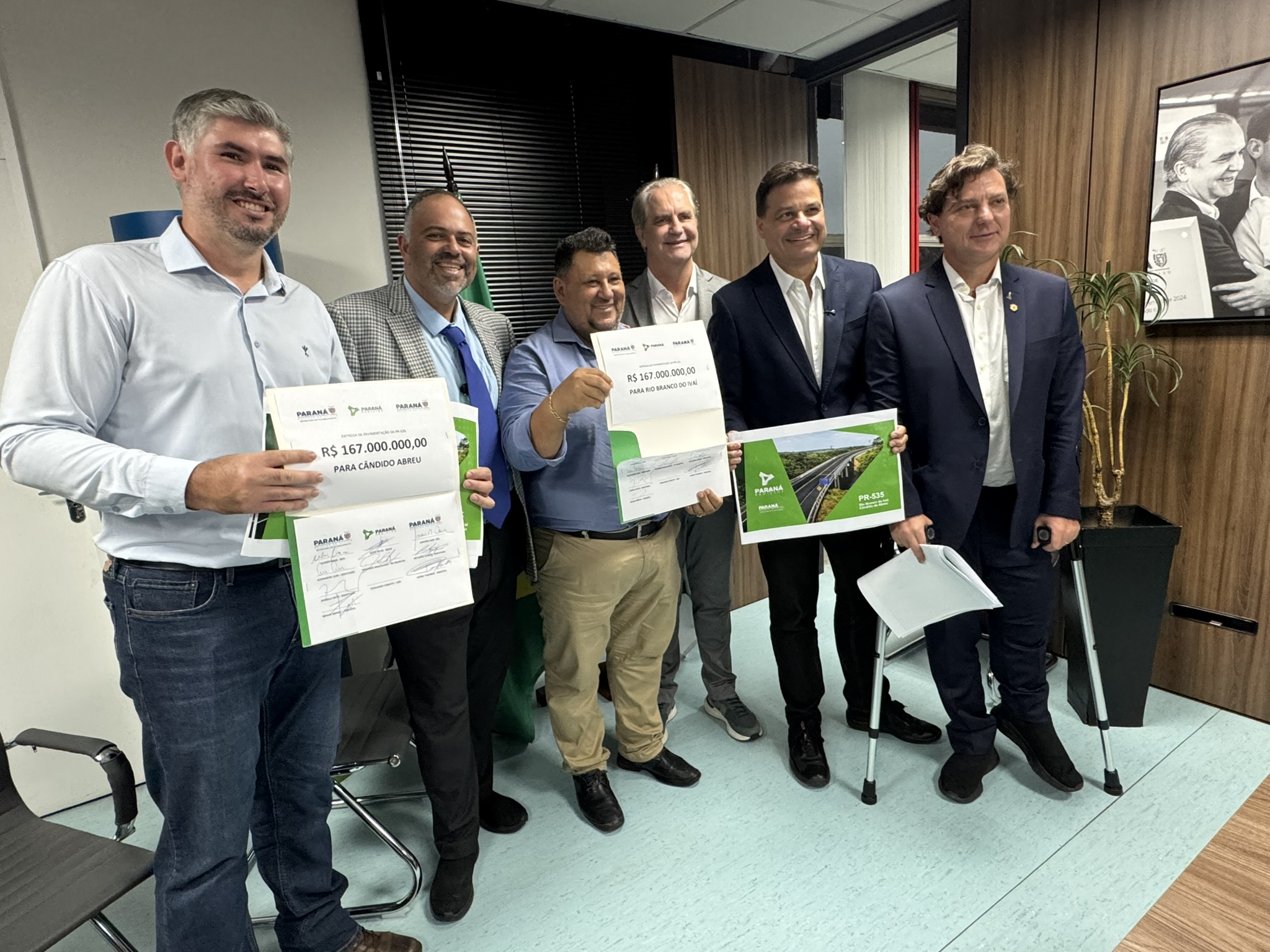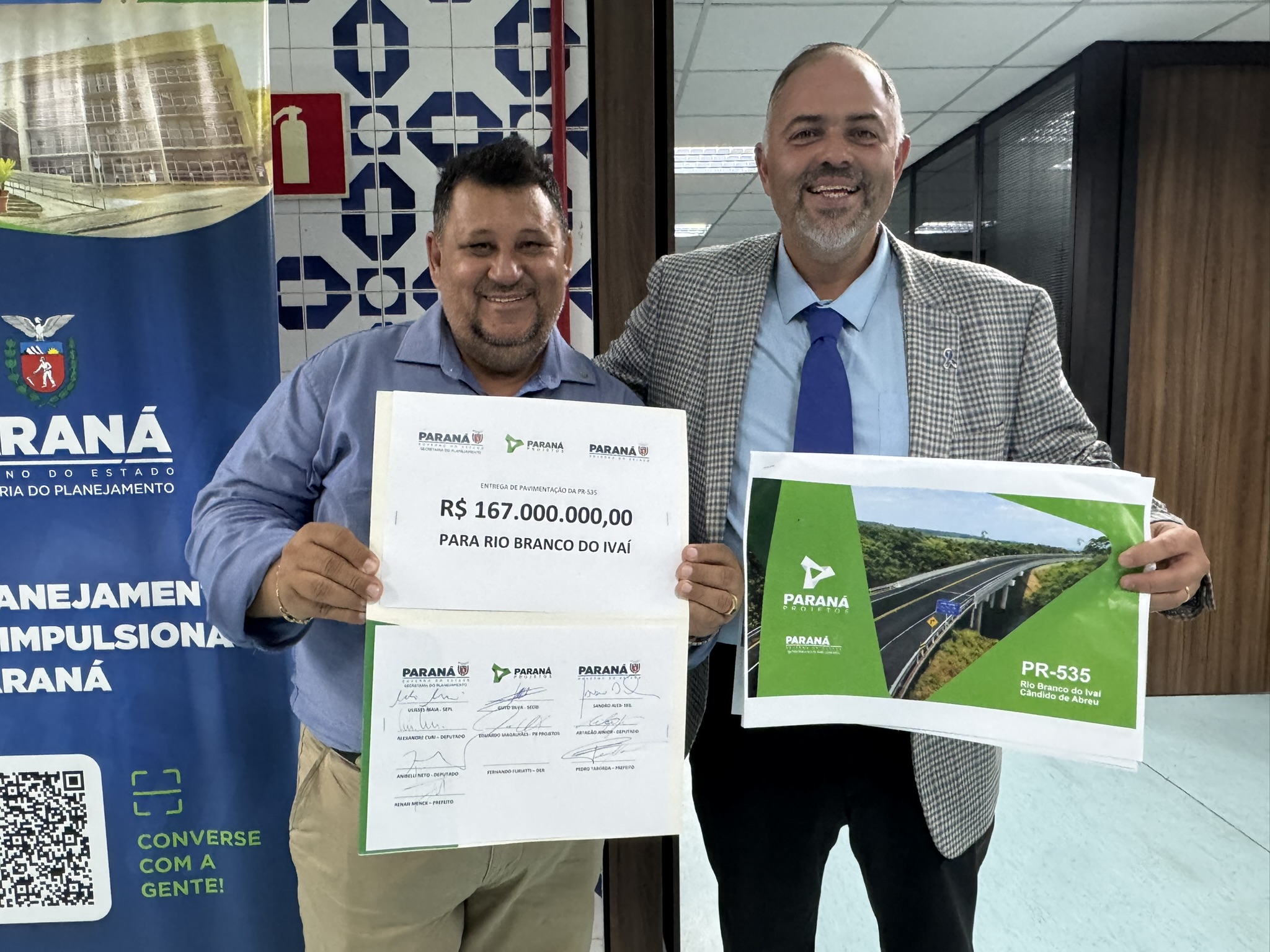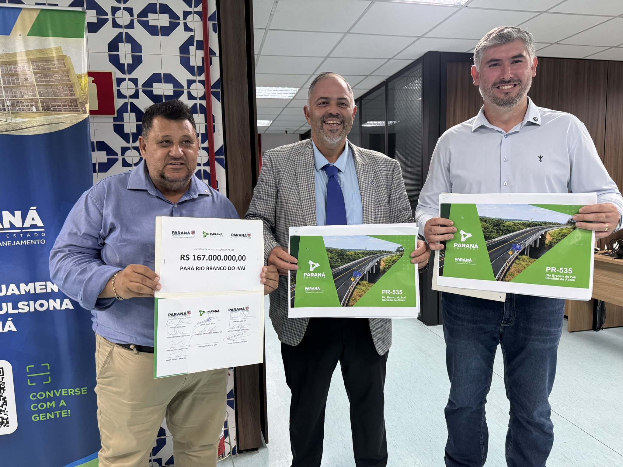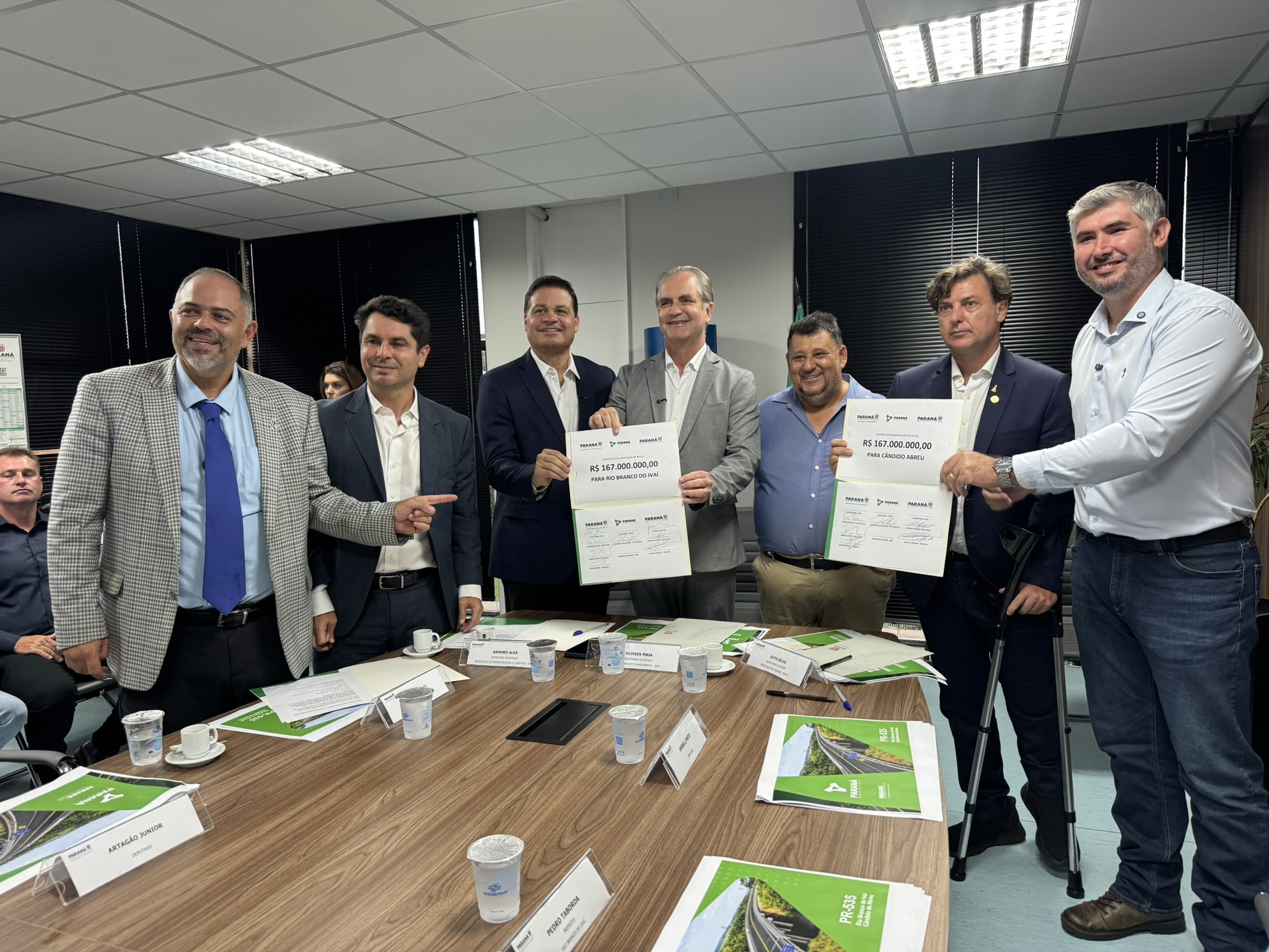 Na tarde desta terça-feira (03), o deputado estadual Artagão Júnior participou da entrega do projeto de pavimentação da rodovia PR-535, que liga os municípios de Cândido de Abreu e Rio Branco do Ivaí. A obra, orçada em R$ 167 milhões, é considerada estratégica para a mobilidade e o desenvolvimento da região Centro-Norte do Paraná.