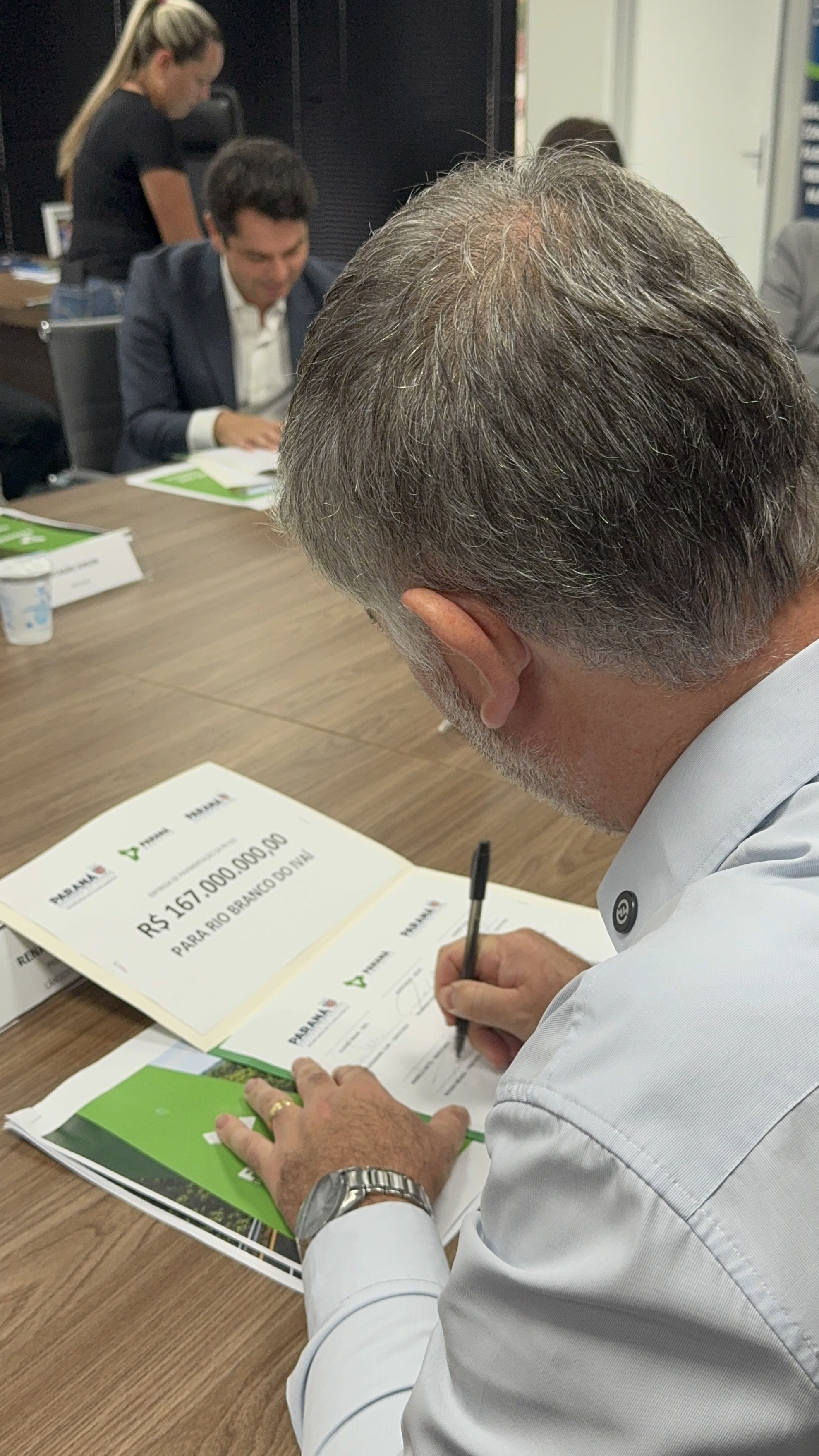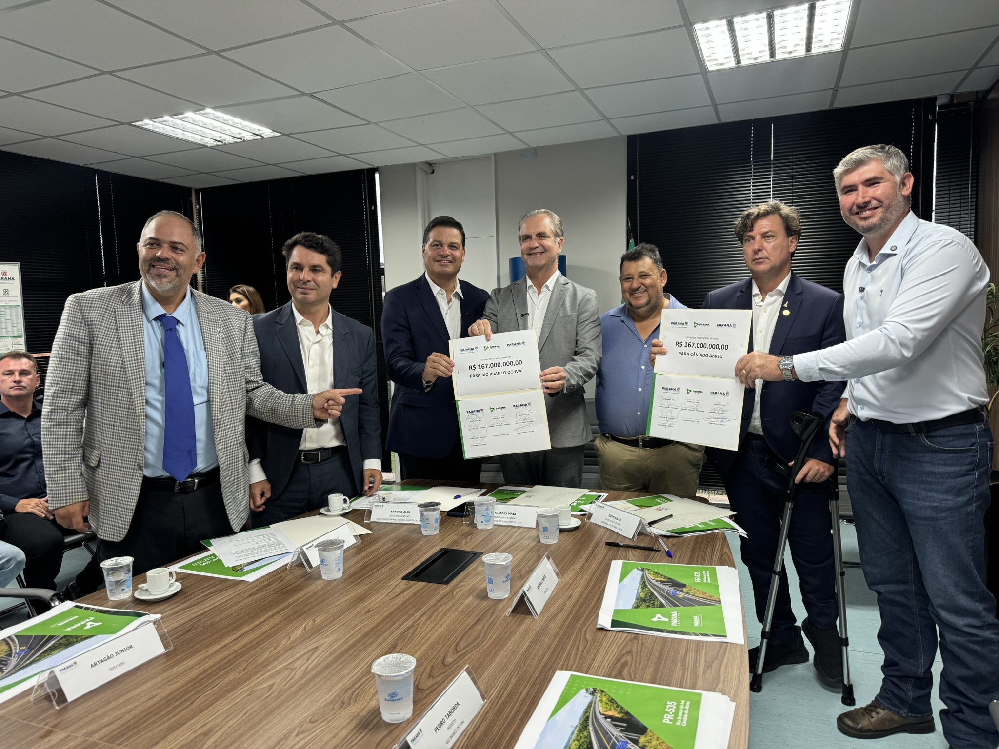 O ato contou com a presença do presidente da Assembleia Legislativa do Paraná, deputado Alexandre Curi; do secretário de Estado da Infraestrutura e Logística, Sandro Alex; do secretário de Estado das Cidades, Guto Silva; do secretário de Estado do Planejamento, Ulisses Maia; do presidente da Paraná Projetos, Eduardo Magalhães; além dos prefeitos Renan Romanichen, de Cândido de Abreu, e Pedro Taborda, de Rio Branco do Ivaí, bem como deputados estaduais.