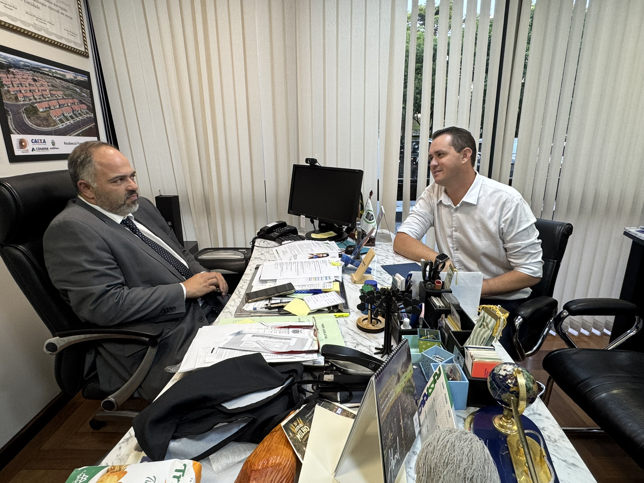 No final da tarde desta terça-feira (08), o deputado estadual Artagão Júnior recebeu em seu gabinete o prefeito Juninho, do município de Marquinho, para tratar de demandas locais e alinhar novos investimentos. Durante o encontro, o prefeito também agradeceu ao parlamentar pela viabilização de R$ 130 mil destinados ao Colégio Estadual João Rysicz, por meio do programa Escola Mais Bonita. Além disso, foram destacadas outras conquistas importantes para o município, com recursos aplicados em pavimentação urbana e melhorias em estradas rurais.