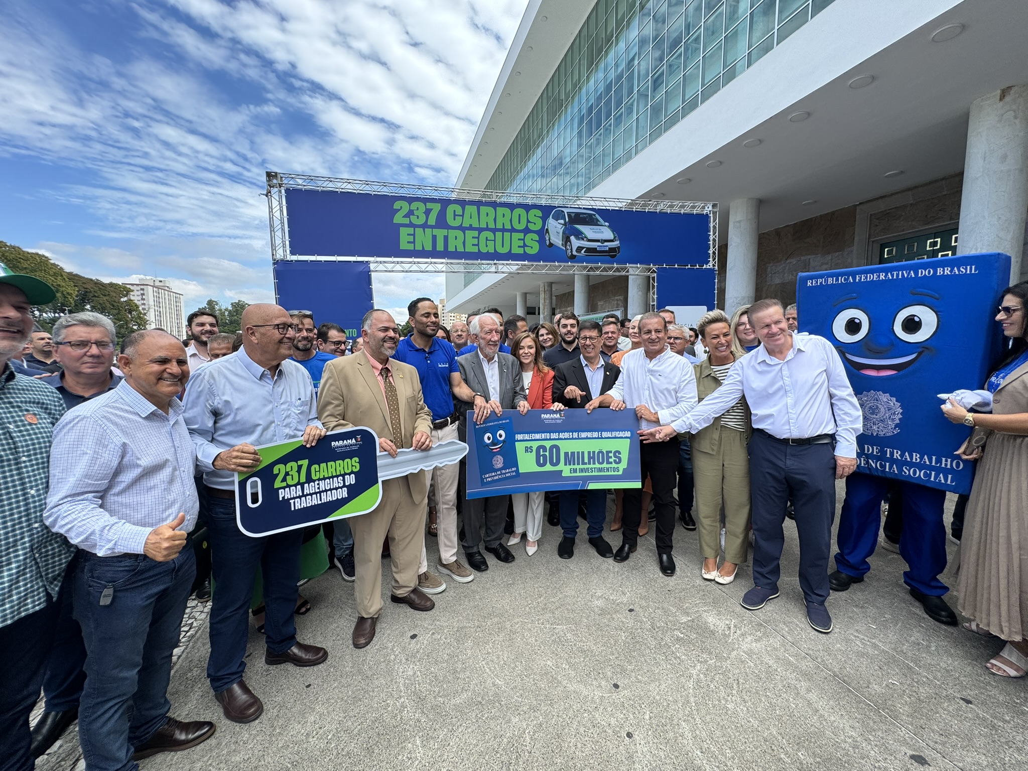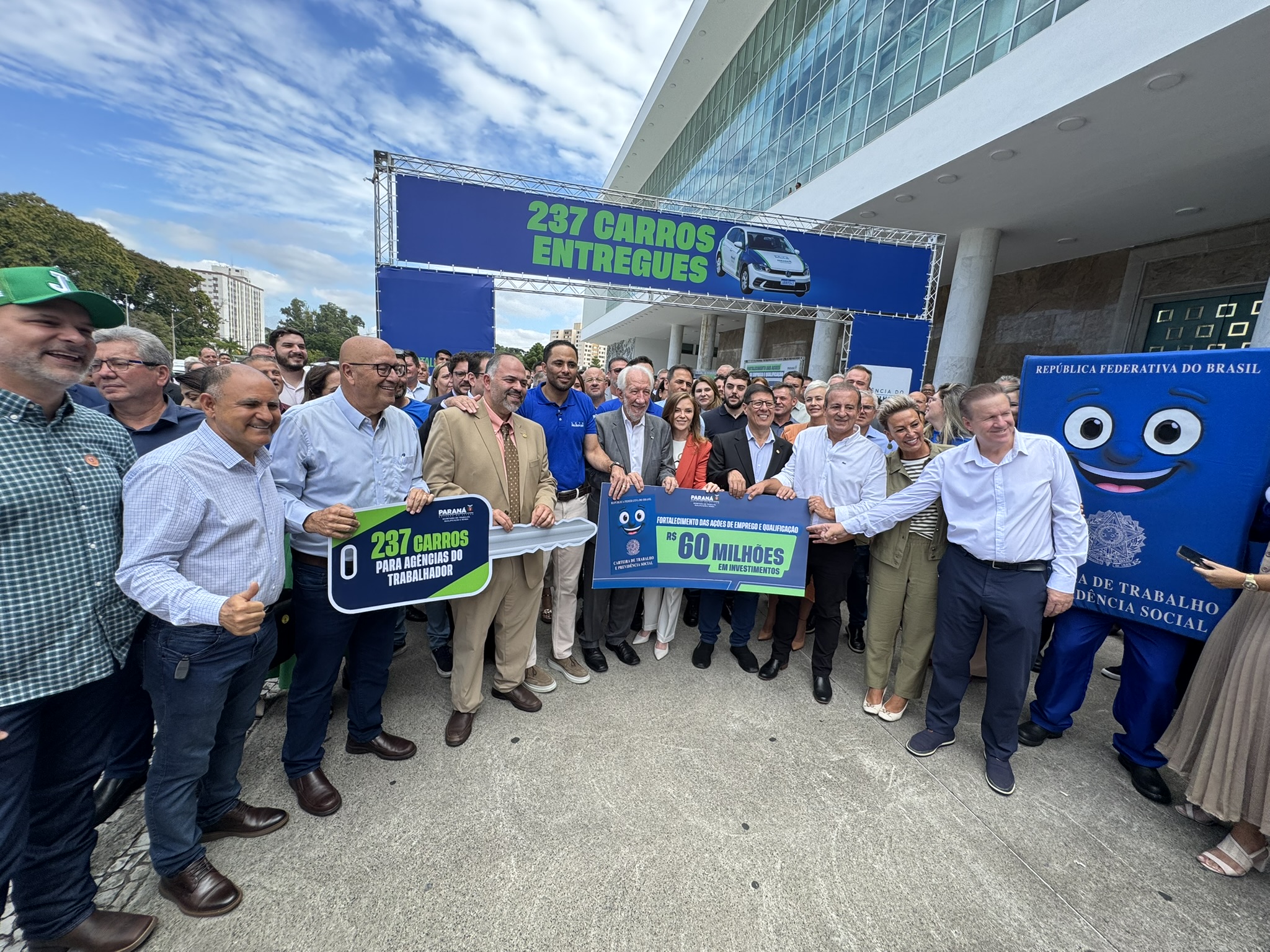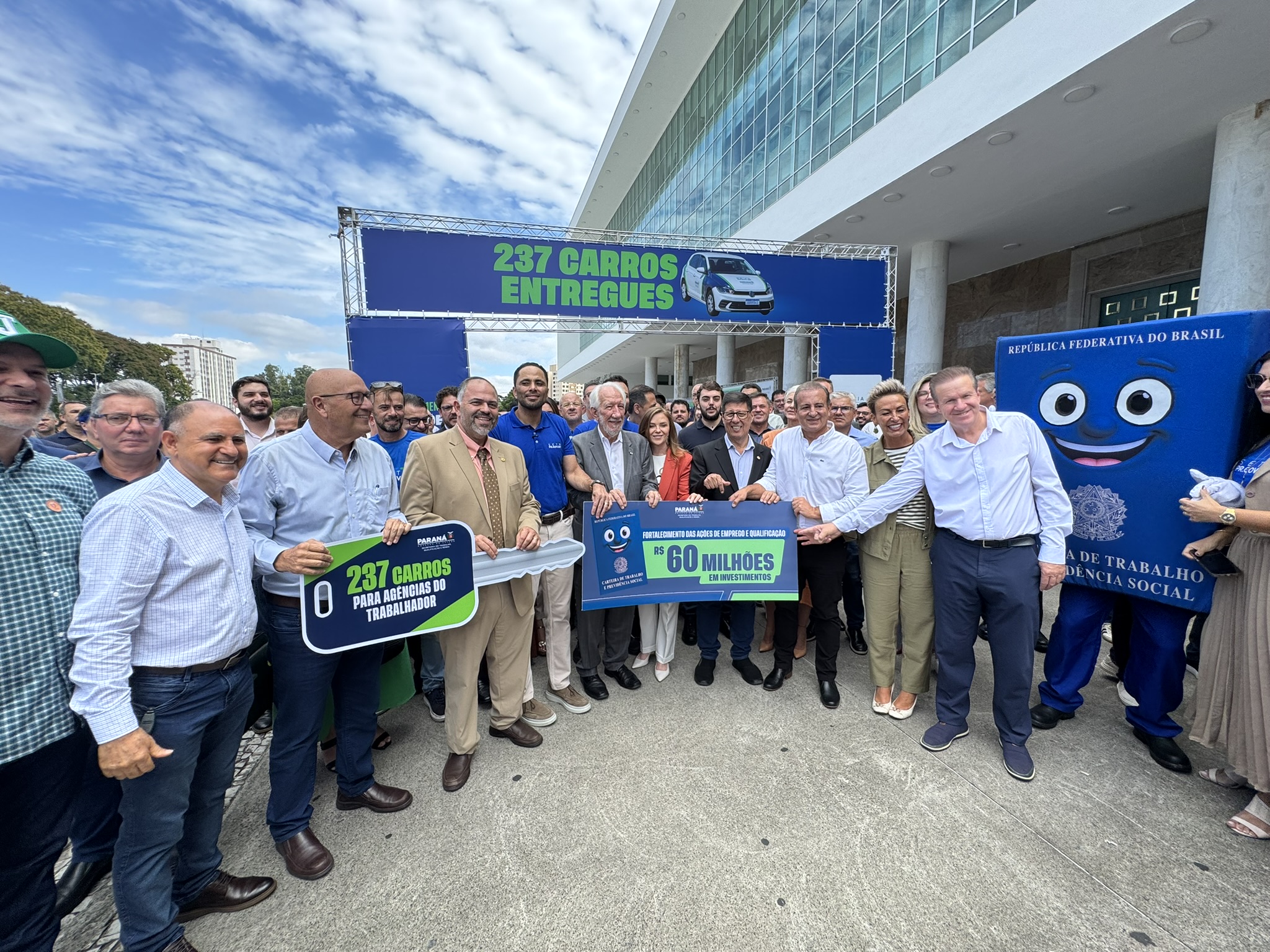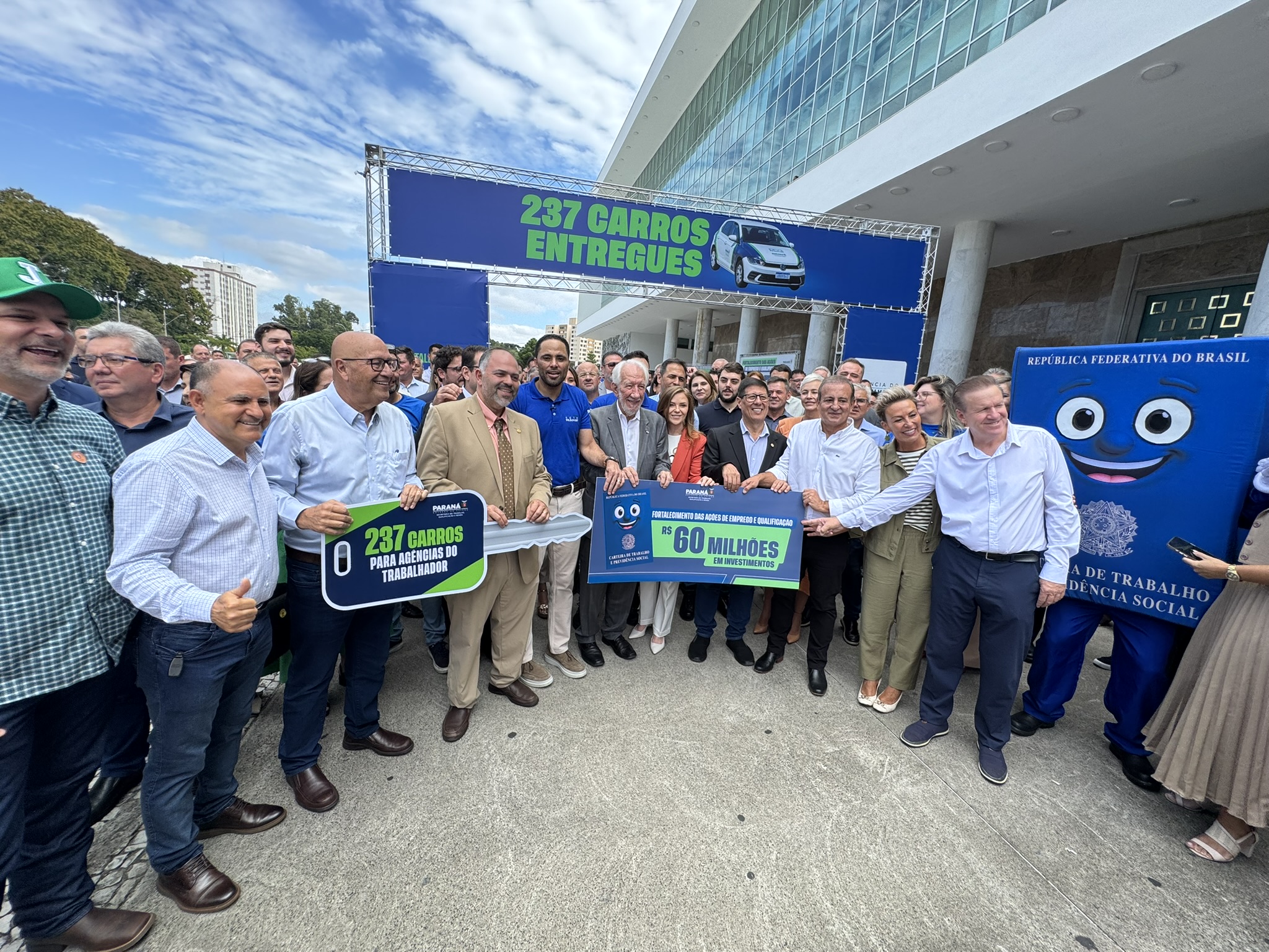 Na manhã desta segunda-feira (23), o deputado estadual Artagão Júnior participou, em frente ao Palácio do Iguaçu, da entrega de 237 veículos novos destinados à rede de Agências do Trabalhador do Paraná, contemplando 226 municípios.