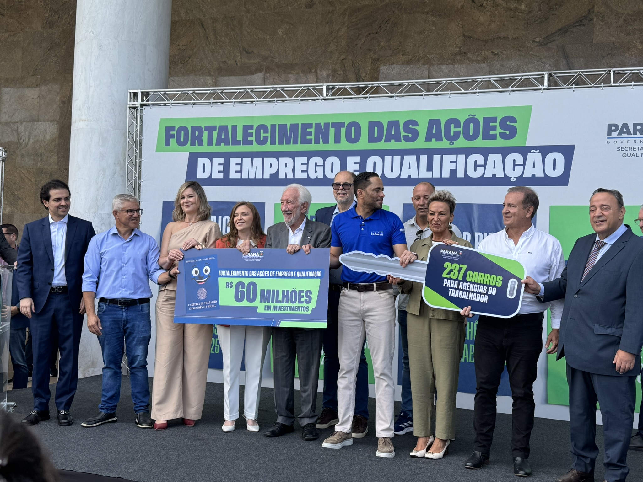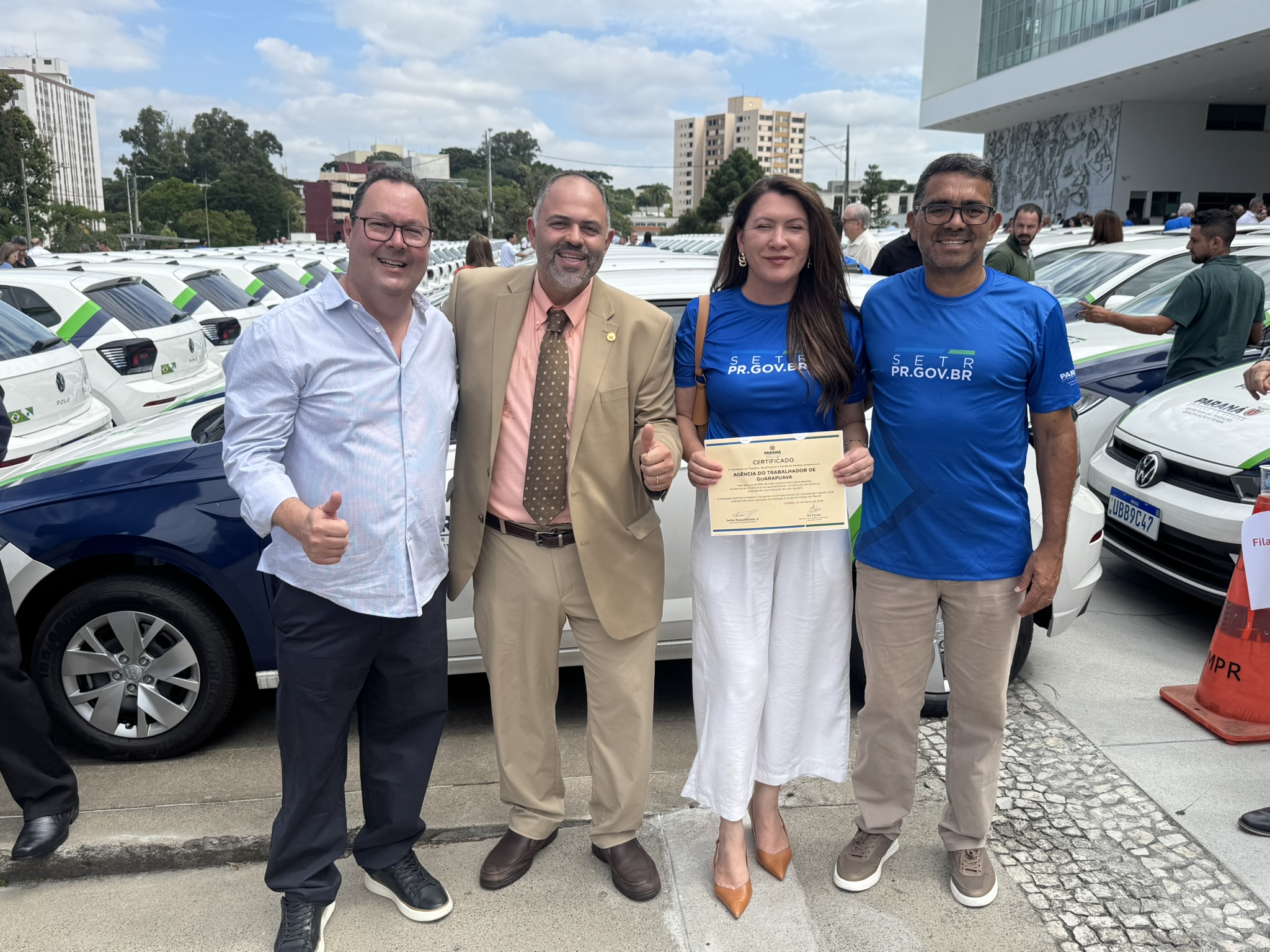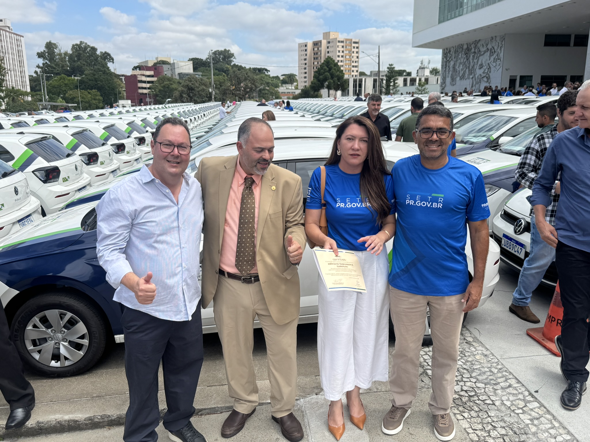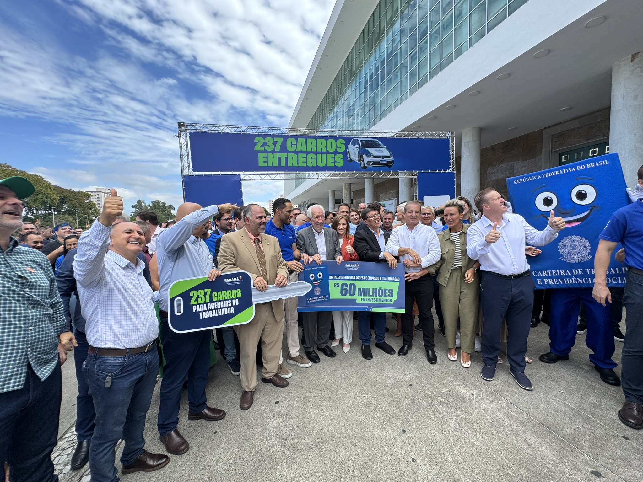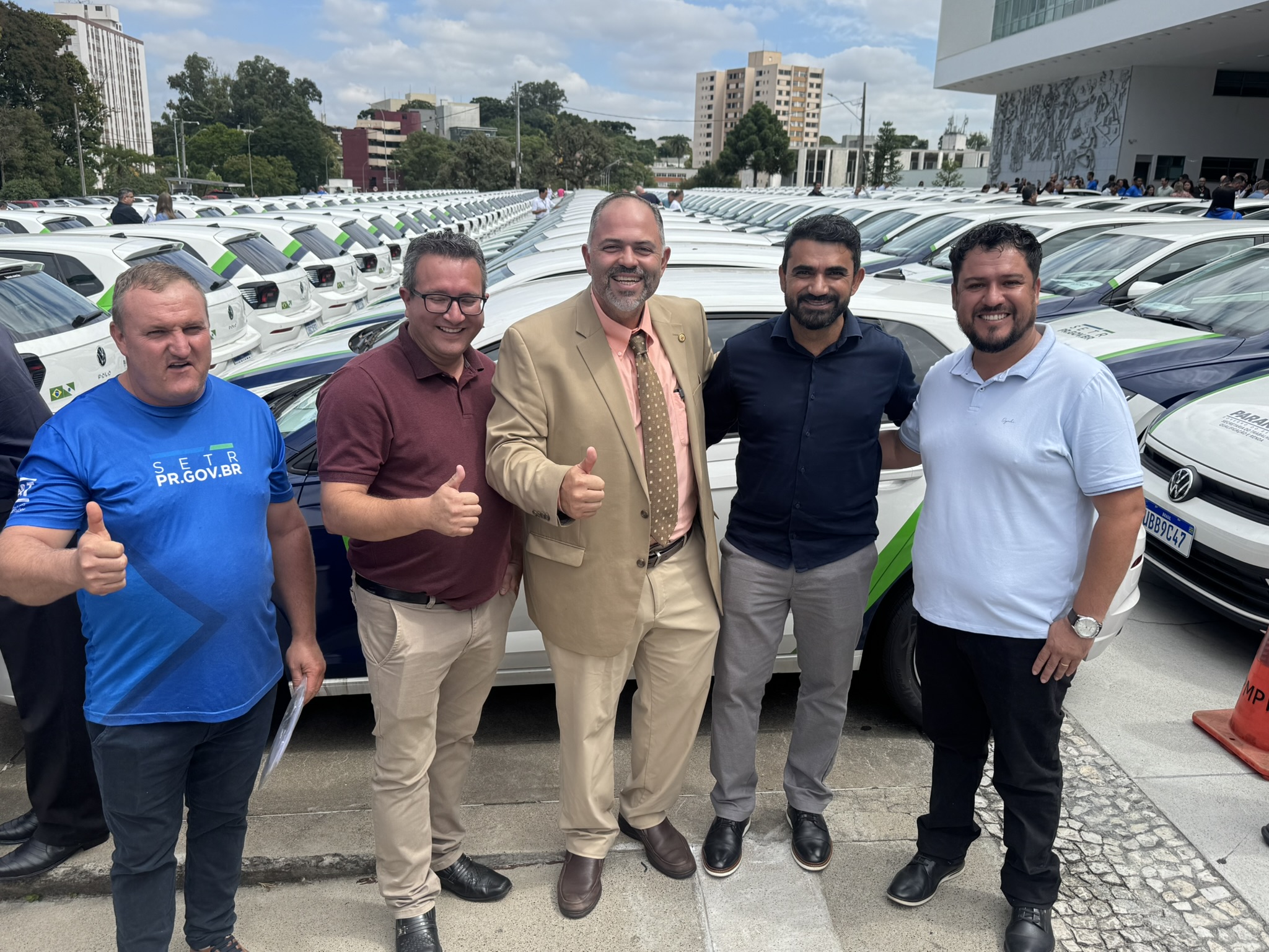 Na manhã desta segunda-feira (23), o deputado estadual Artagão Júnior participou, em frente ao Palácio do Iguaçu, da entrega de 237 veículos novos destinados à rede de Agências do Trabalhador do Paraná, contemplando 226 municípios.