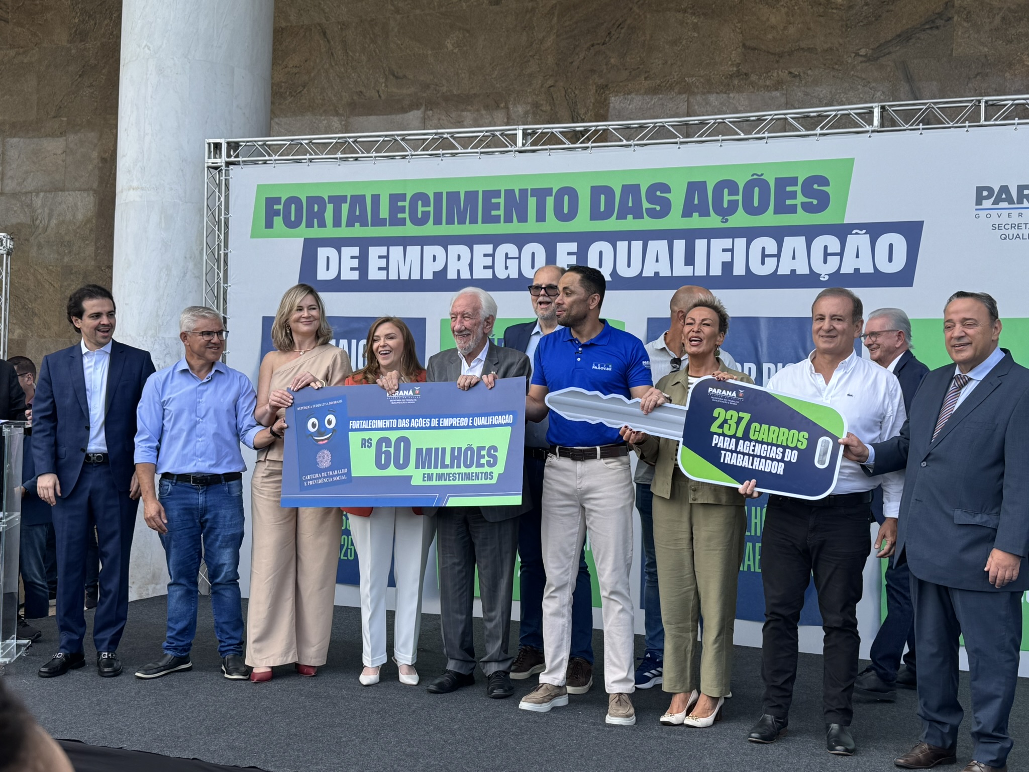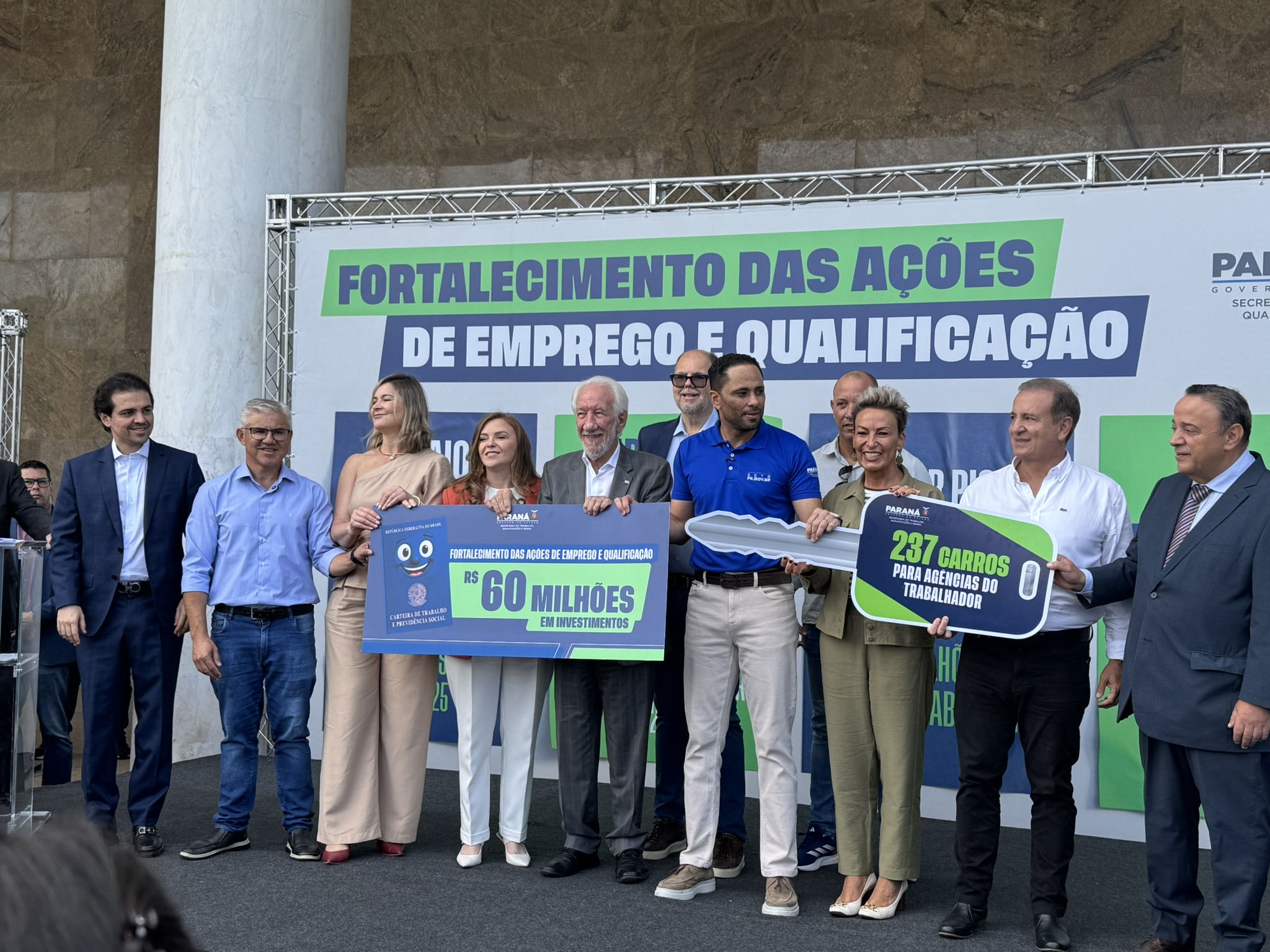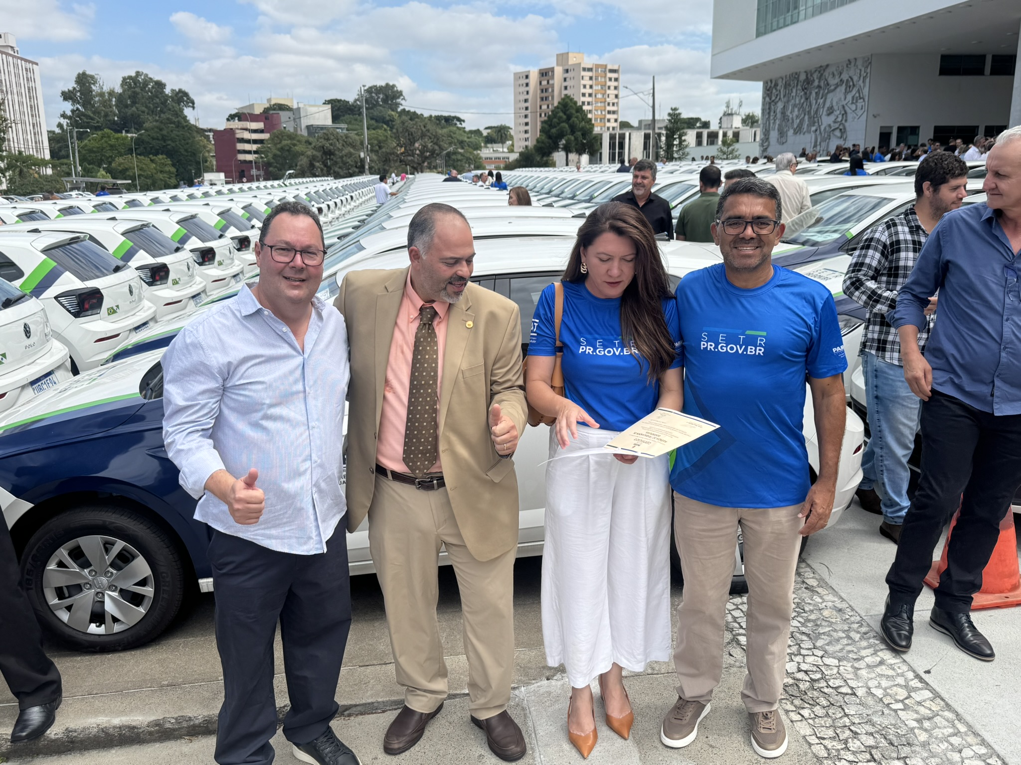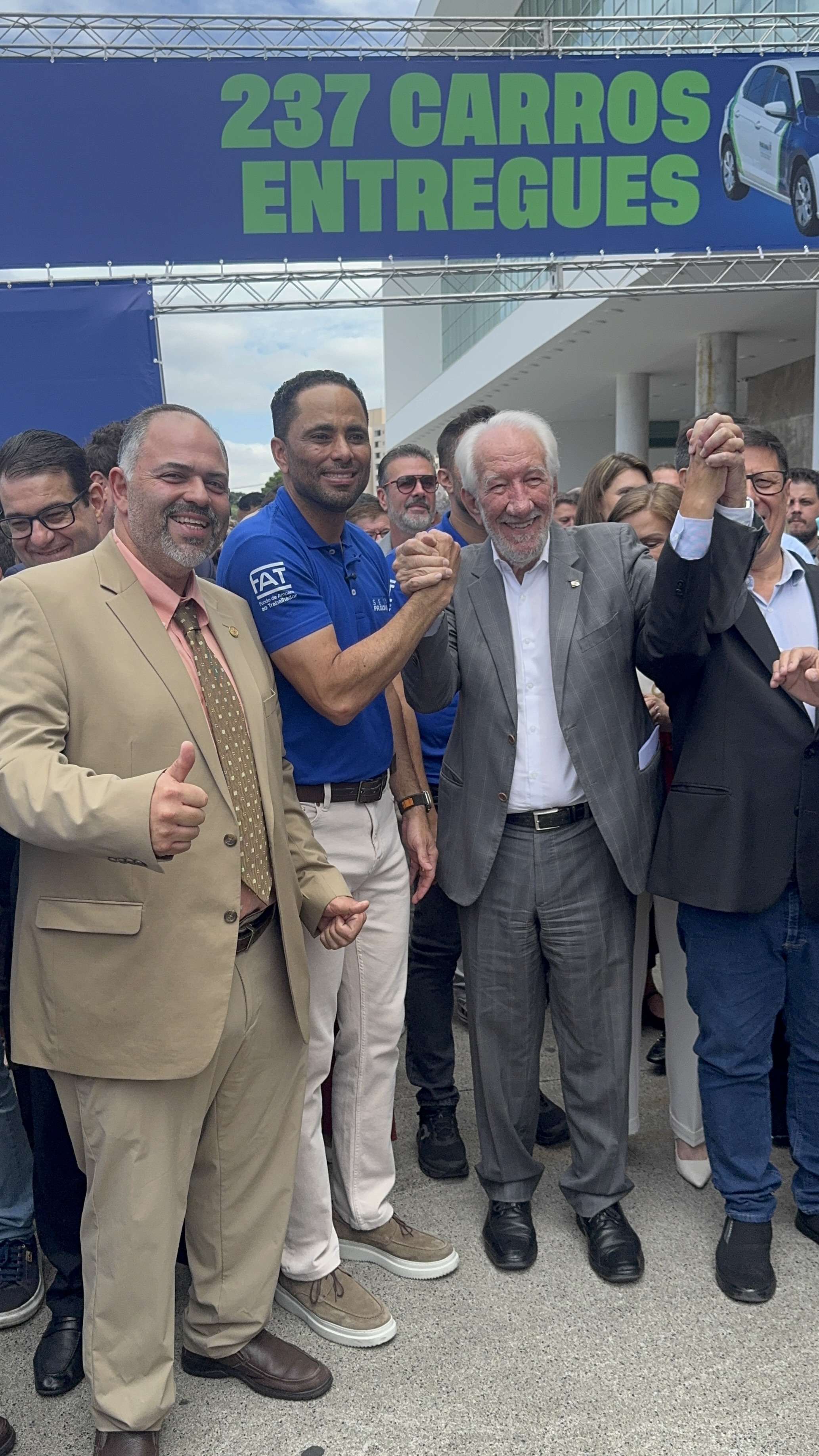 Na manhã desta segunda-feira (23), o deputado estadual Artagão Júnior participou, em frente ao Palácio do Iguaçu, da entrega de 237 veículos novos destinados à rede de Agências do Trabalhador do Paraná, contemplando 226 municípios.