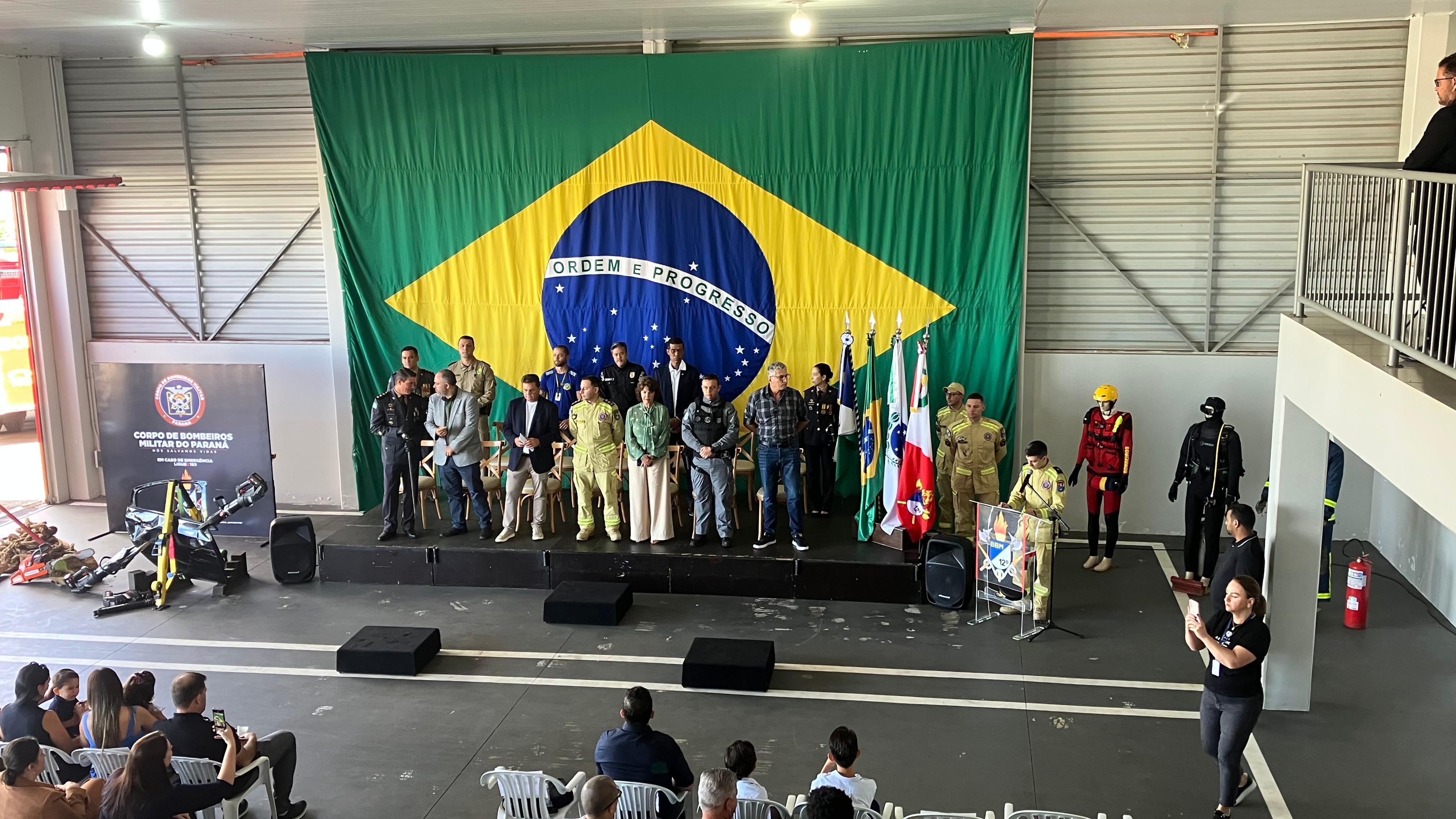 Solenidade reuniu autoridades civis e militares, destacou a valorização da corporação e reforçou a parceria entre Prefeitura e Corpo de Bombeiros para fortalecer a segurança da população de Guarapuava