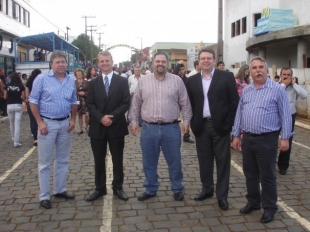 Sávio, assessor da Sedu, prefeito Junior Benato, Dep. Artagão Jr., secretário da Sedu, Wilson Lipski, e o diretor geral da Sedu, Zaza