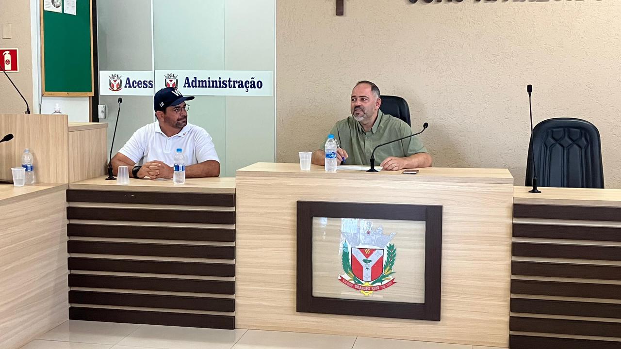 O encontro ocorreu na Prefeitura e na Câmara Municipal de Grandes Rios, com a presença da primeira-dama Jaqueline e dos vereadores Renato do Bar e Vicente.