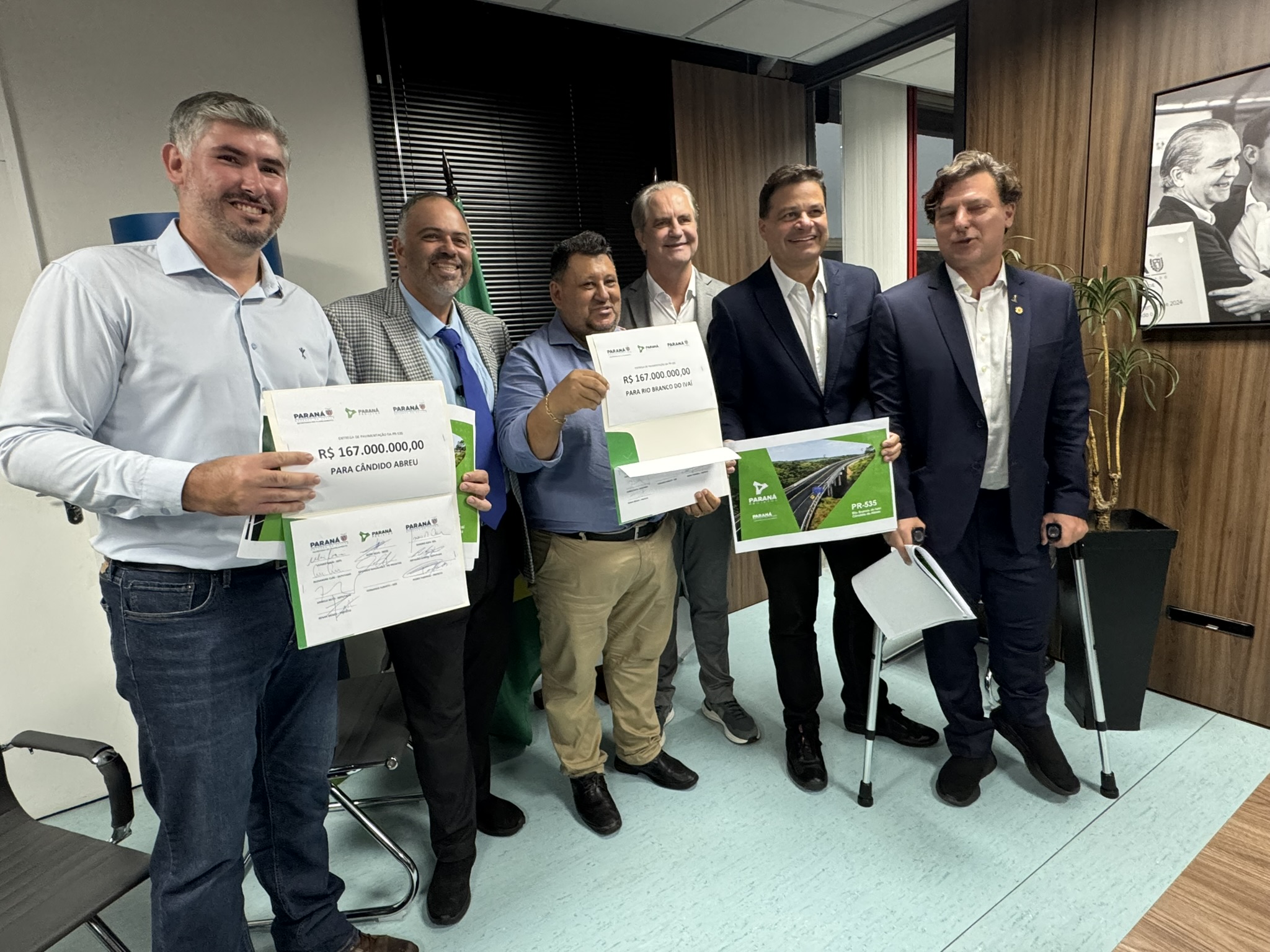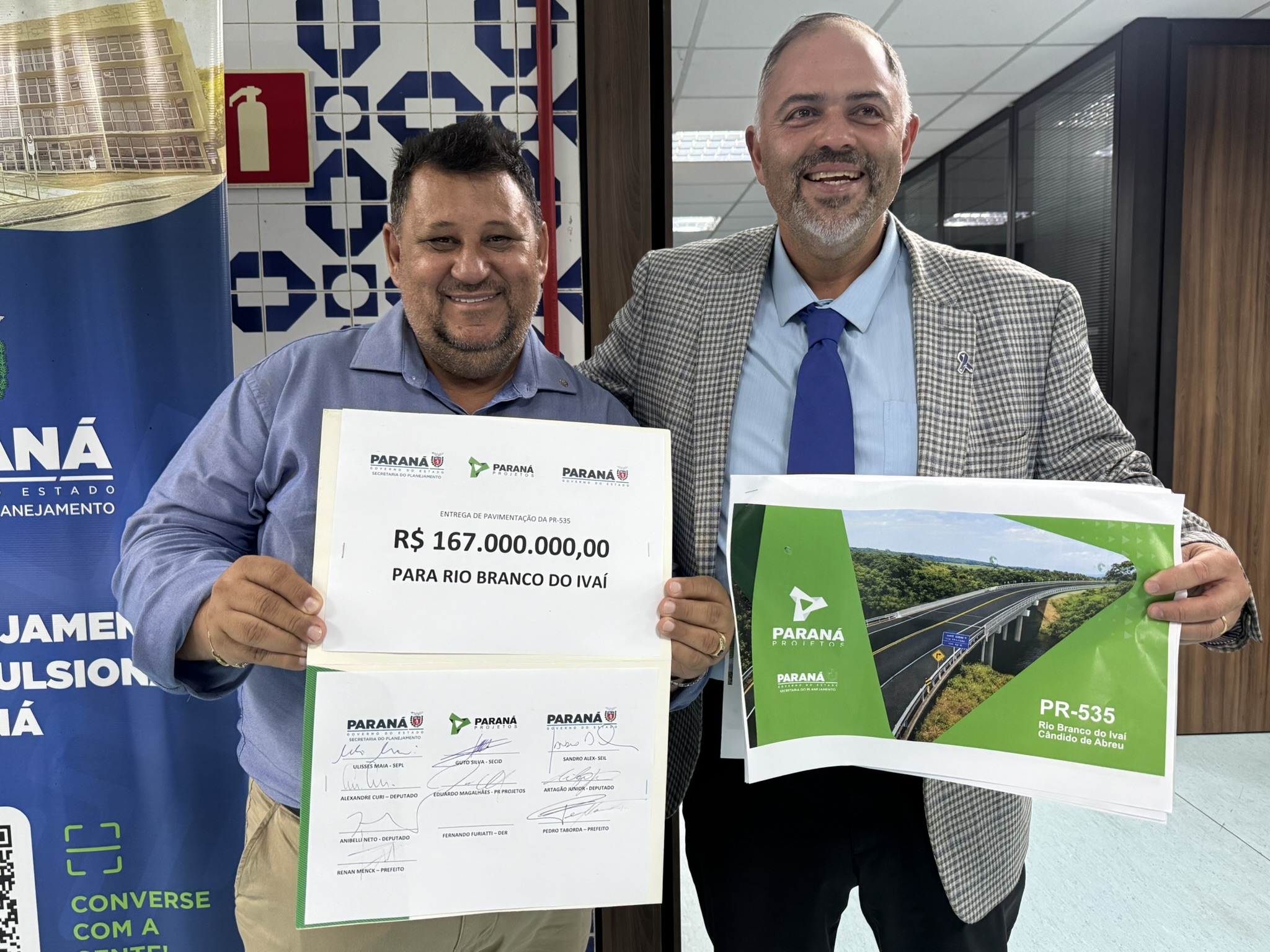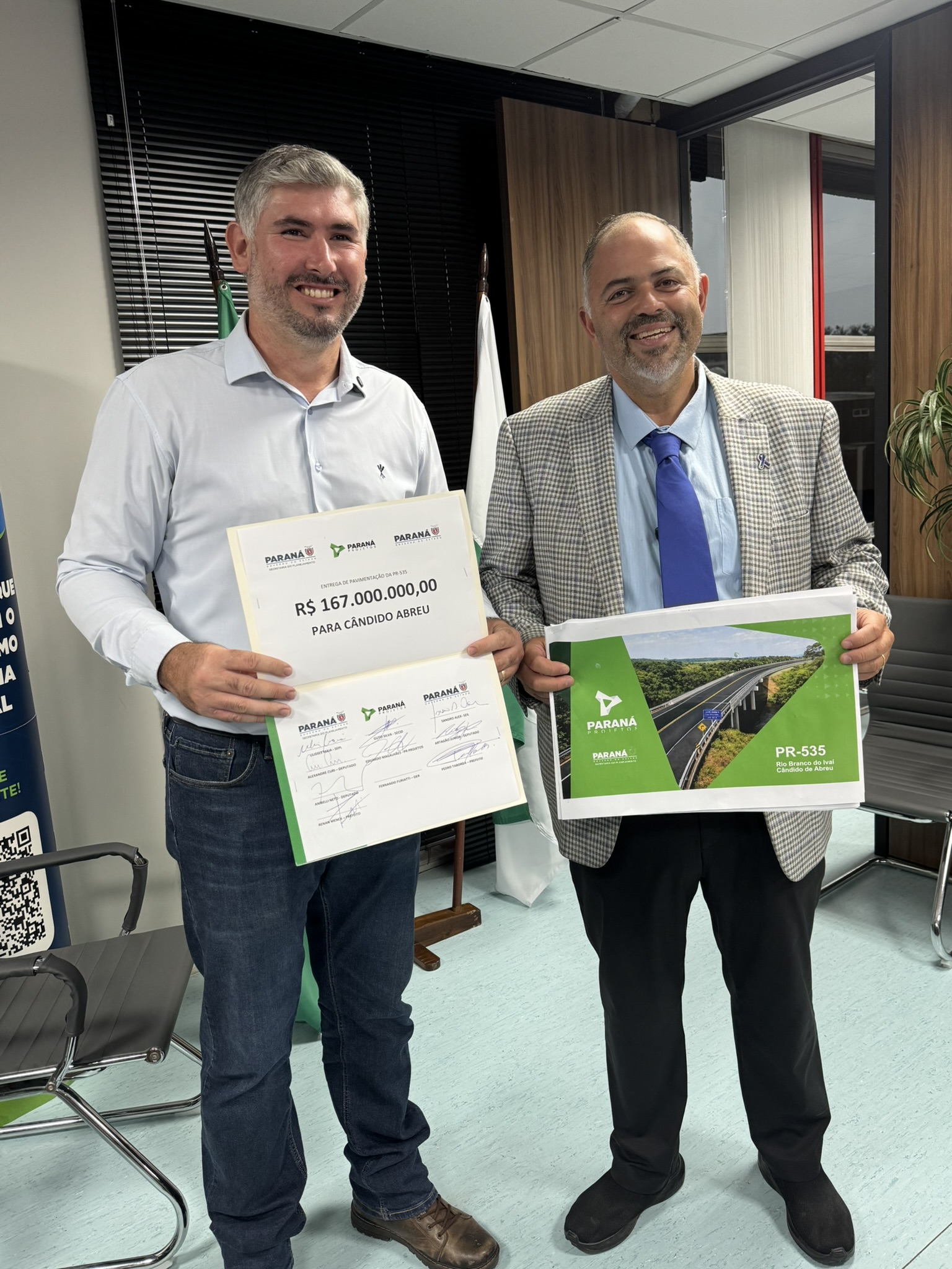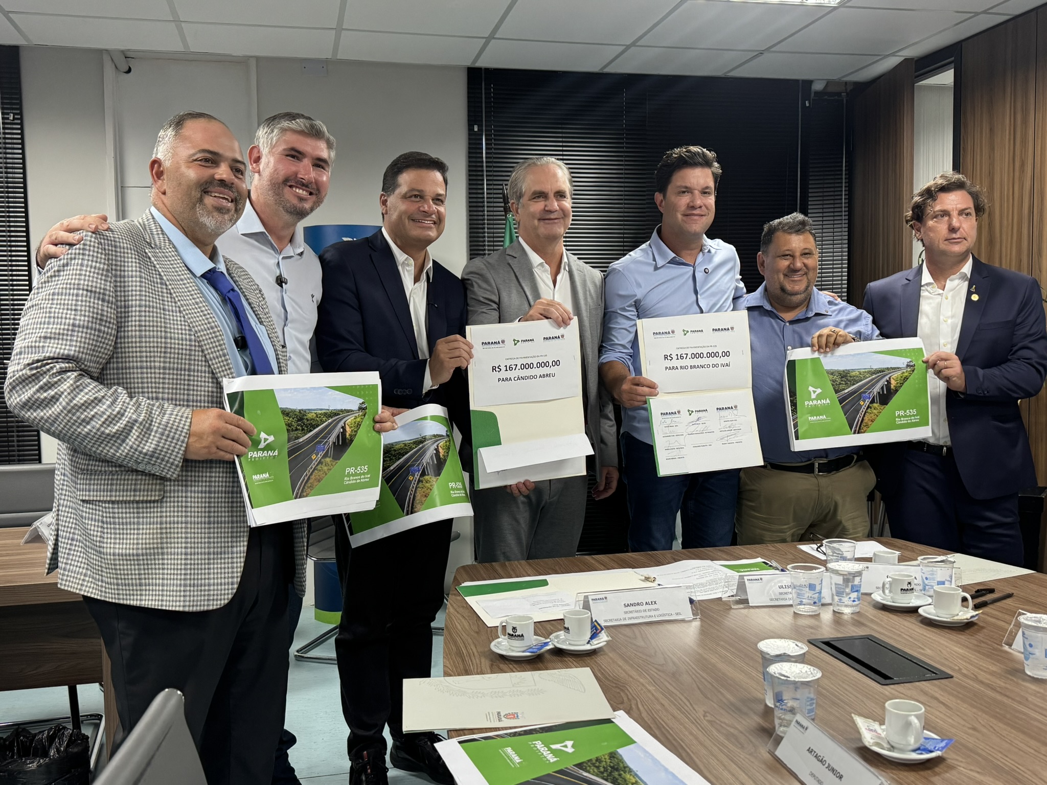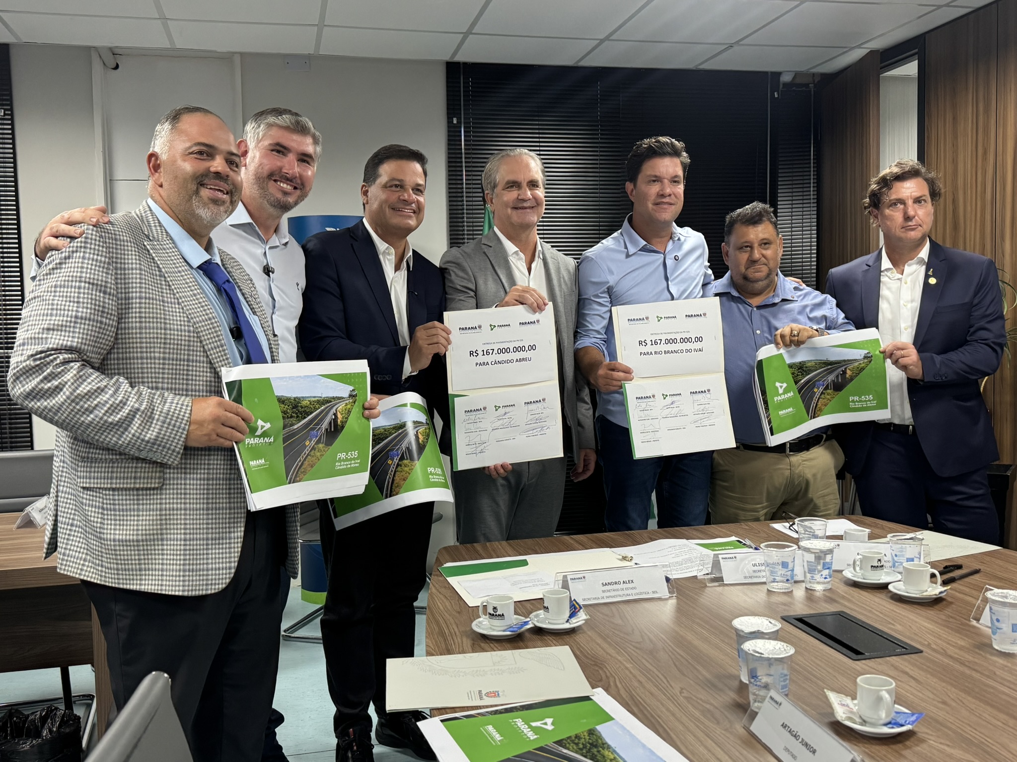 Na tarde desta terça-feira (03), o deputado estadual Artagão Júnior participou da entrega do projeto de pavimentação da rodovia PR-535, que liga os municípios de Cândido de Abreu e Rio Branco do Ivaí. A obra, orçada em R$ 167 milhões, é considerada estratégica para a mobilidade e o desenvolvimento da região Centro-Norte do Paraná.