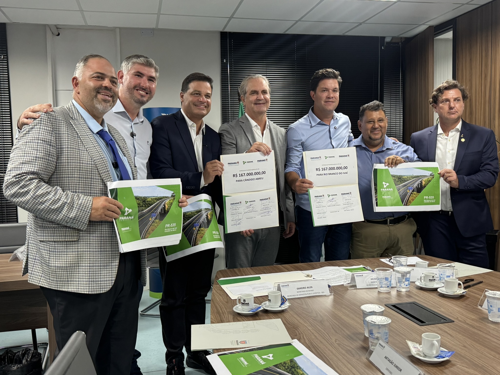 Durante a reunião, o presidente da Assembleia Legislativa, Alexandre Curi, anunciou que irá apresentar uma proposta na para que o projeto da pavimentação da PR-535 receba o nome de Artagão de Mattos Leão, em memória ao ex-conselheiro do Tribunal de Contas, ex-deputado e pai de Artagão Júnior, em reconhecimento ao trabalho que realizou em prol do Vale do Ivaí ao longo de sua trajetória política.