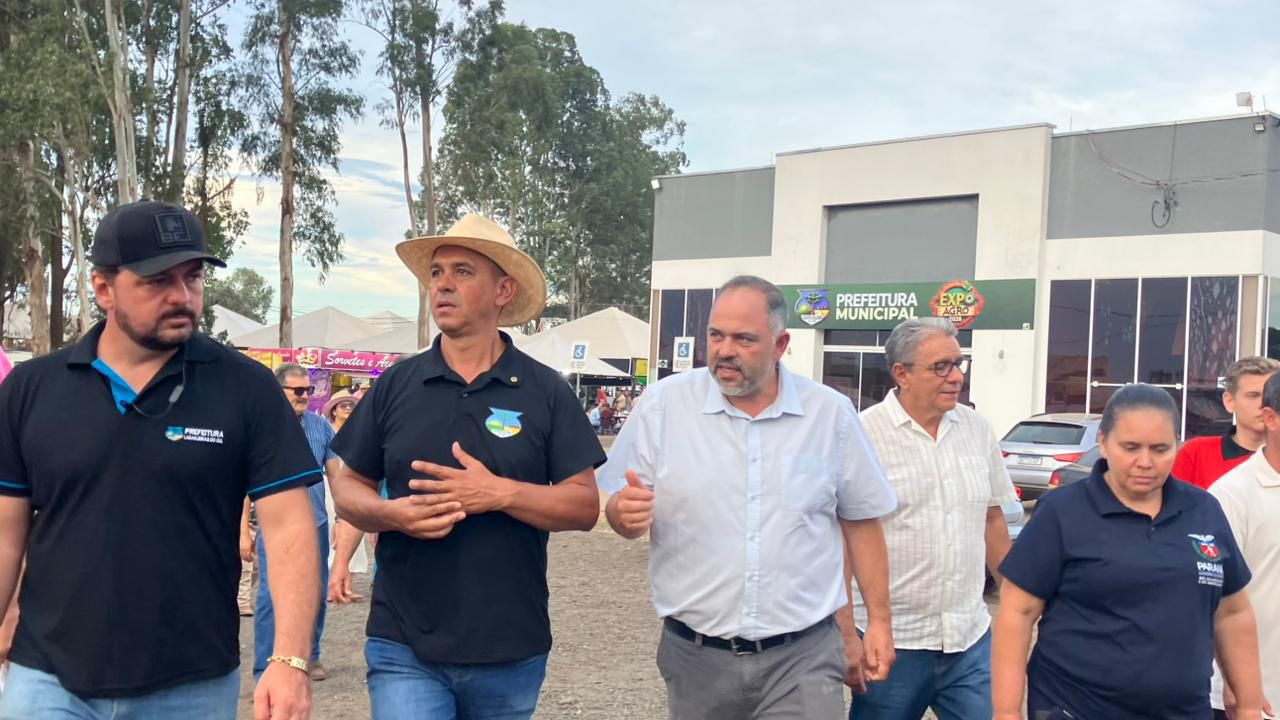 Na noite deste domingo (15), o deputado estadual Artagão Júnior esteve no município de Laranjeiras do Sul participando da ExpoAgro 2026. O parlamentar esteve acompanhado do prefeito Jaison Mendes e dos vereadores Juvinha Viola (presidente da Câmara) e Miro Xavier.