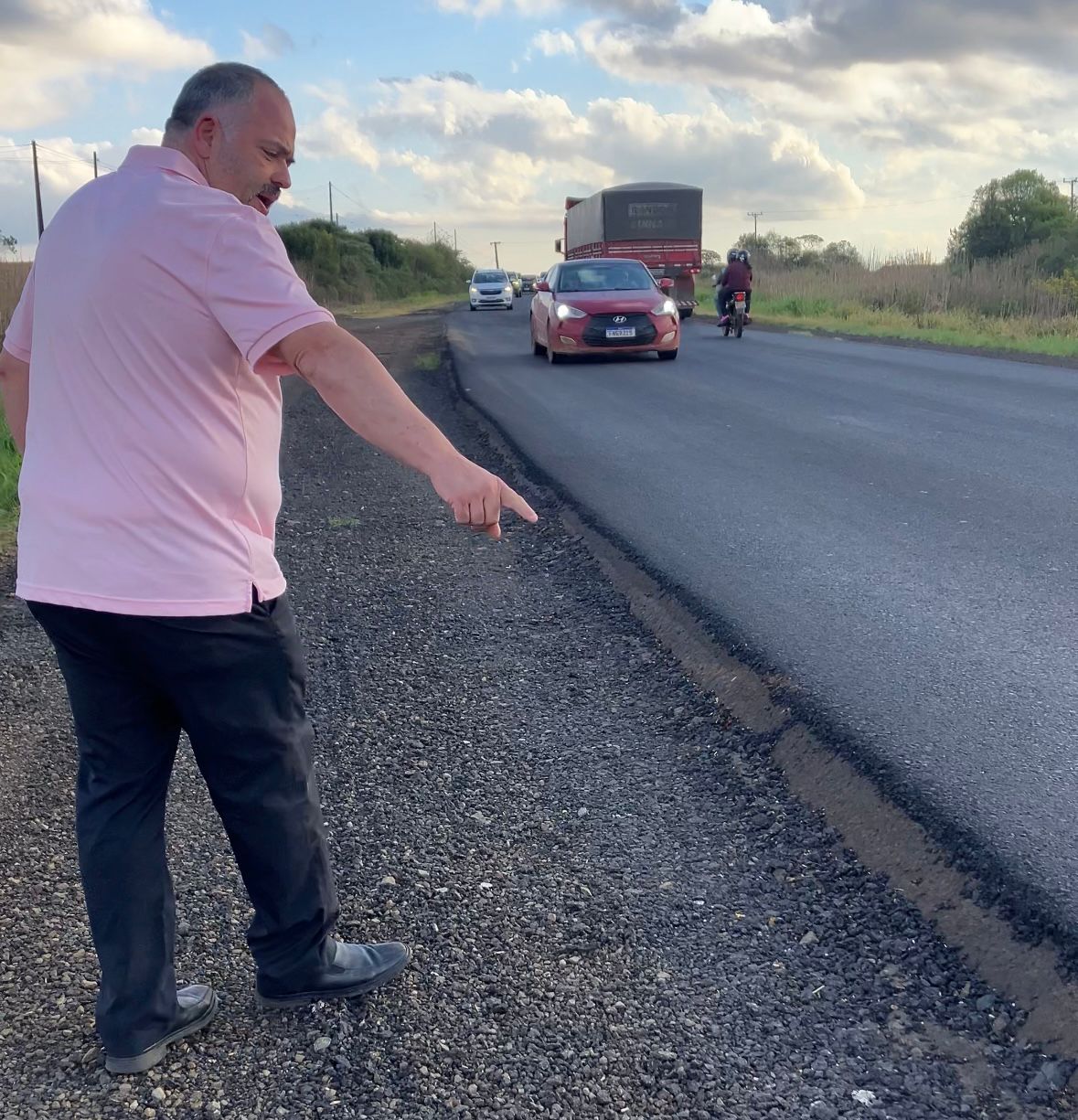 Ao mesmo tempo, o deputado aproveitou a visita para registrar uma preocupação que vem sendo relatada por moradores e motoristas que trafegam pela rodovia. Segundo ele, o desnível entre o novo asfalto e o acostamento, em alguns trechos, está acima do esperado, o que tem causado acidentes e situações de risco.