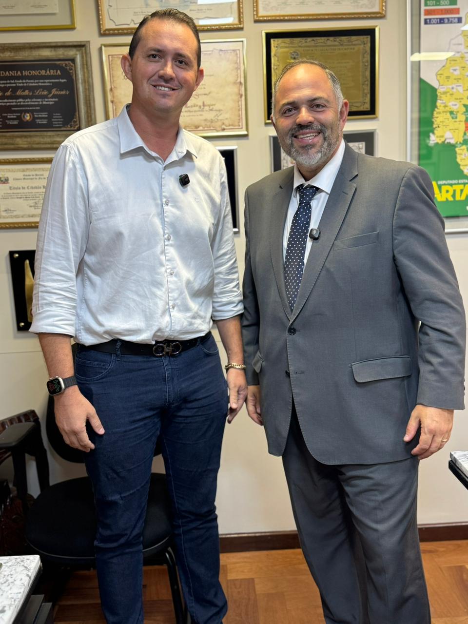 No final da tarde desta terça-feira (08), o deputado estadual Artagão Júnior recebeu em seu gabinete o prefeito Juninho, do município de Marquinho, para tratar de demandas locais e alinhar novos investimentos. Durante o encontro, o prefeito também agradeceu ao parlamentar pela viabilização de R$ 130 mil destinados ao Colégio Estadual João Rysicz, por meio do programa Escola Mais Bonita. Além disso, foram destacadas outras conquistas importantes para o município, com recursos aplicados em pavimentação urbana e melhorias em estradas rurais.