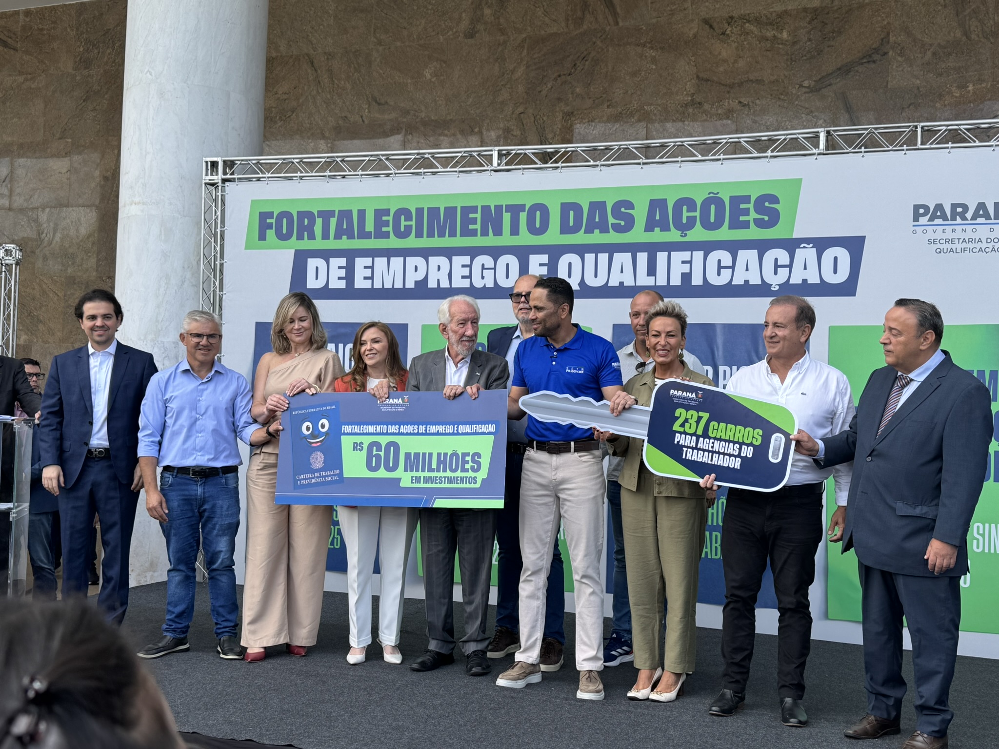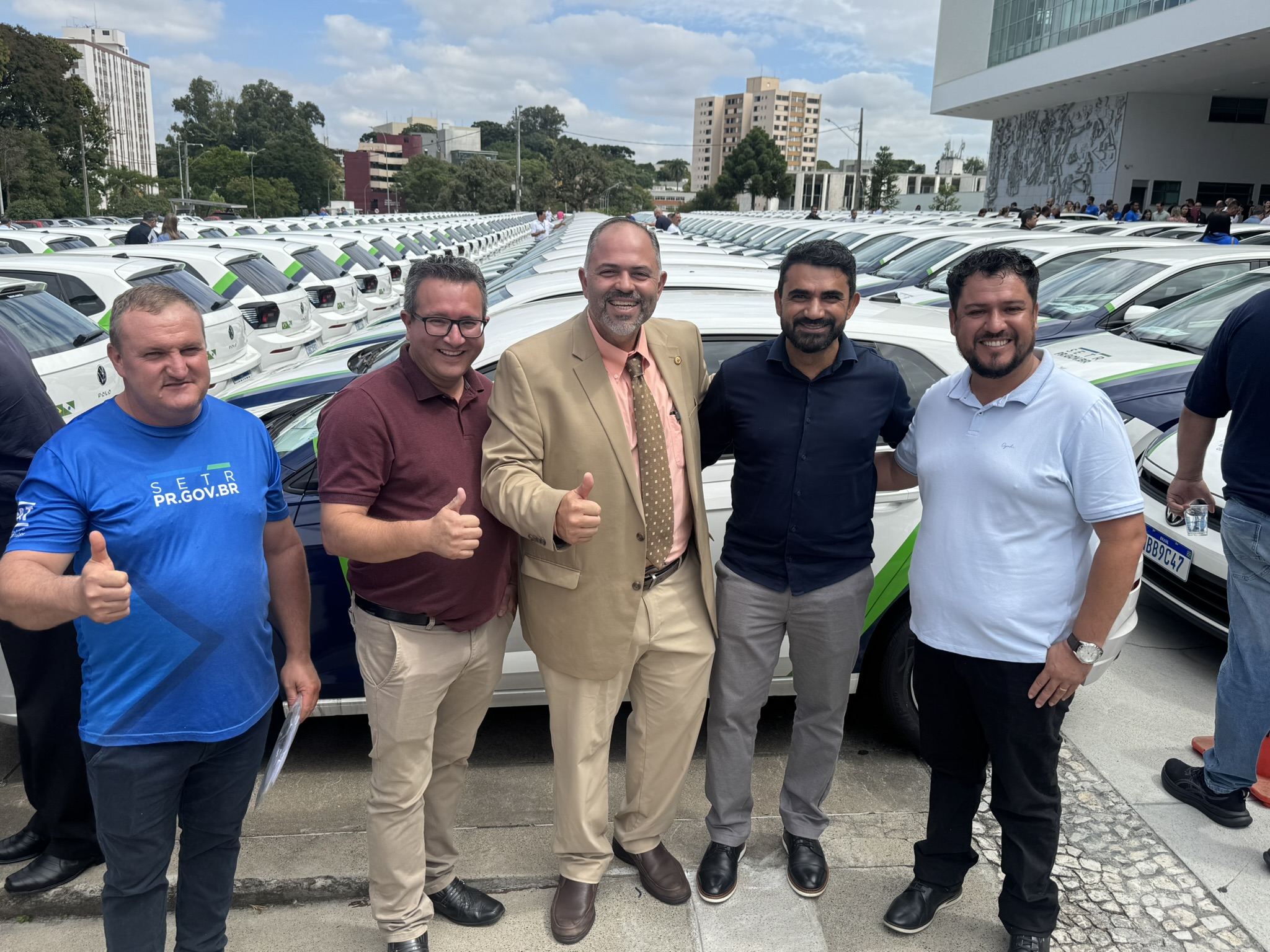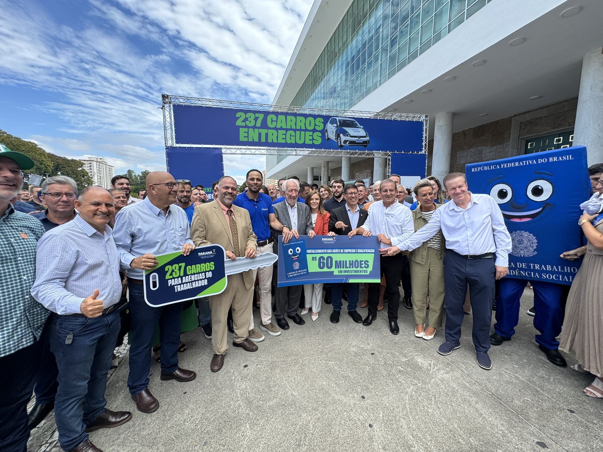 Na manhã desta segunda-feira (23), o deputado estadual Artagão Júnior participou, em frente ao Palácio do Iguaçu, da entrega de 237 veículos novos destinados à rede de Agências do Trabalhador do Paraná, contemplando 226 municípios.
