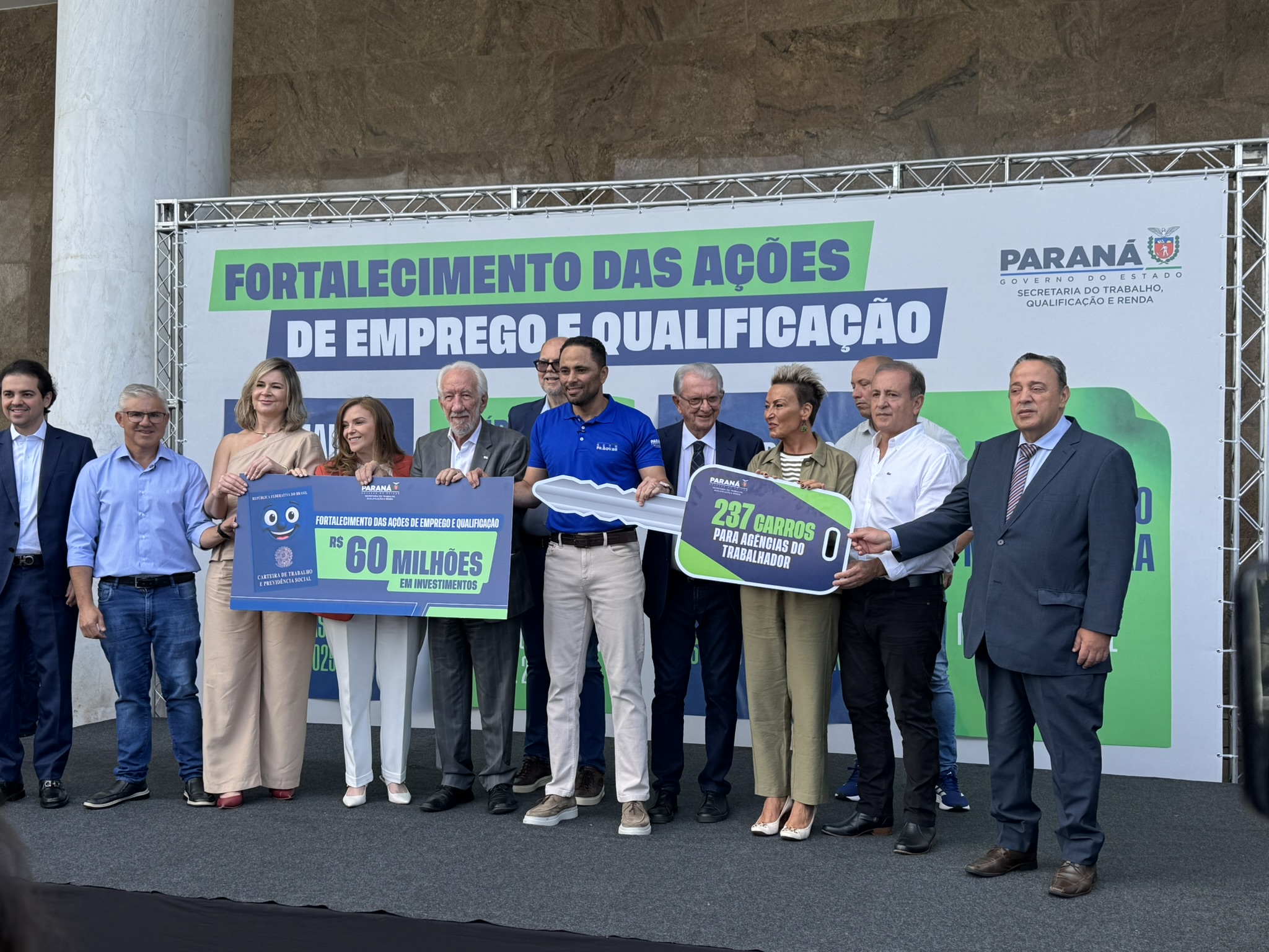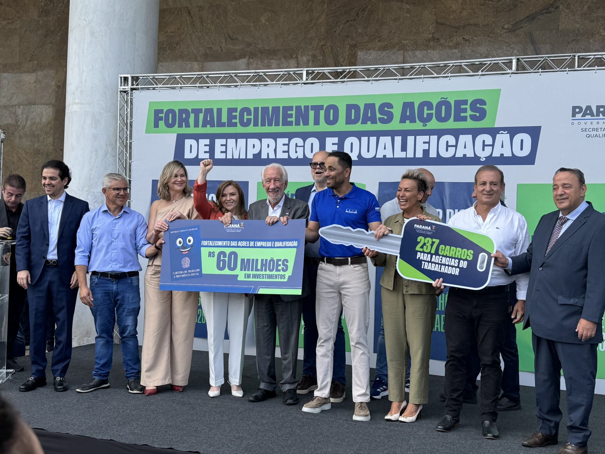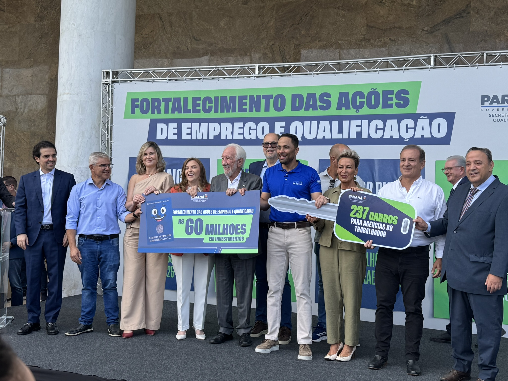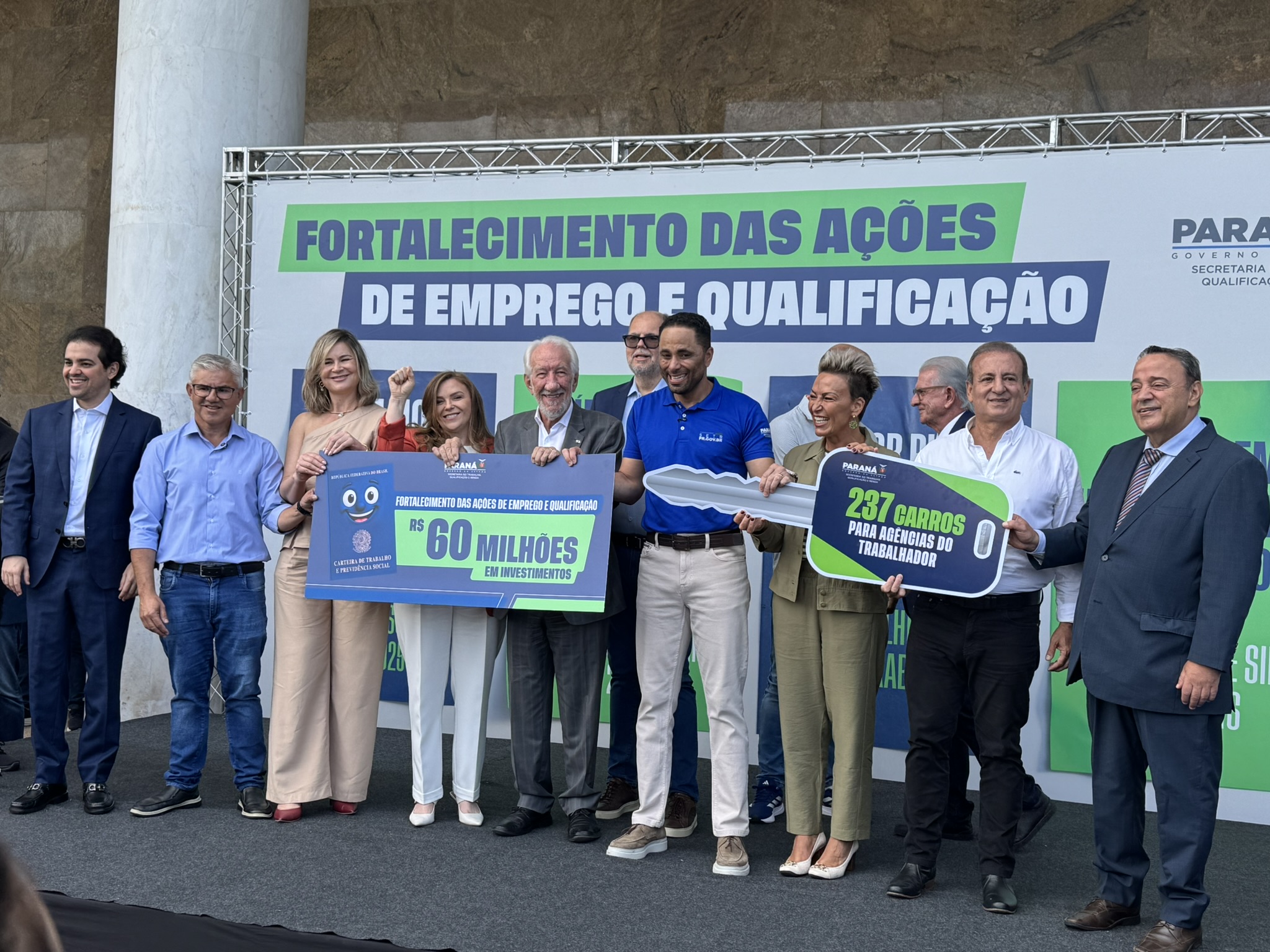 Na manhã desta segunda-feira (23), o deputado estadual Artagão Júnior participou, em frente ao Palácio do Iguaçu, da entrega de 237 veículos novos destinados à rede de Agências do Trabalhador do Paraná, contemplando 226 municípios.