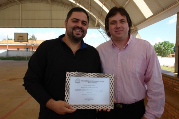 Deputado Artagão Junior recebendo homenagem do Colégio Estadual Vereador Heitor Rocha Kramer