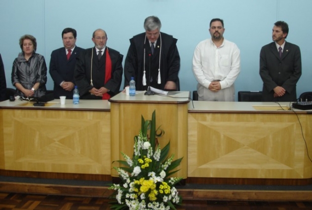 Deputado ao lado do presidente do Tribunal de Justiça do Paraná, Miguel Kfouri Neto, durante a instalação da 3ª Vara CÃvel da Comarca de Guarapuava