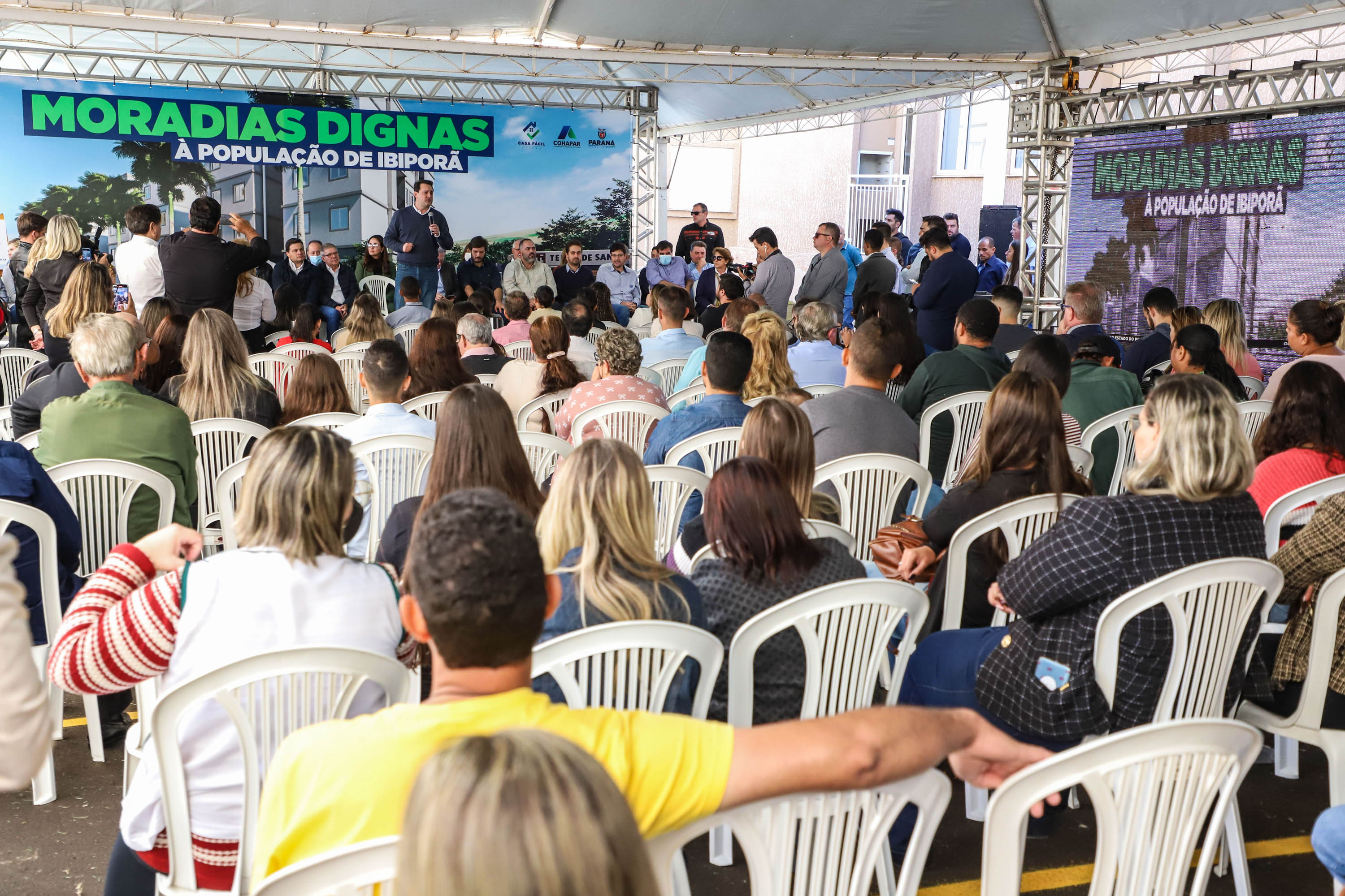 Foi inaugurada nesta quinta-feira (12) a primeira etapa do Residencial Terra de Santa Cruz, com 144 apartamentos, em Ibiporã. O projeto contou com a participação do Governo do Estado, por meio do programa Casa Fácil Paraná, em parceria com a Caixa Econômica e a construtora LBX. No mesmo evento, foram anunciados R$ 40 milhões em obras urbanas para a cidade.