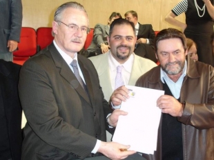 Artagão assinando Ordem de Serviço da Biblioteca Cidadã